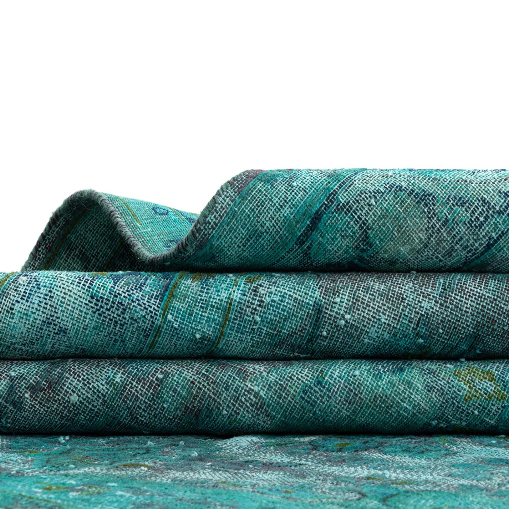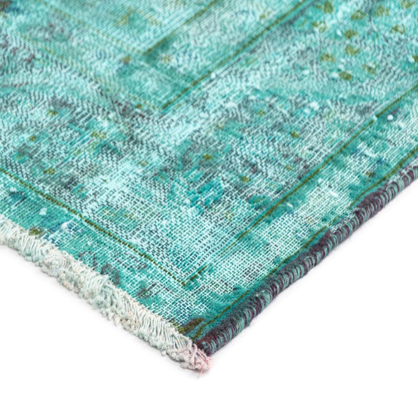 Primary color is Green. Colors in this rug include: Green, Green, Light Brown, Turquoise, Dark Blue, Grey.
