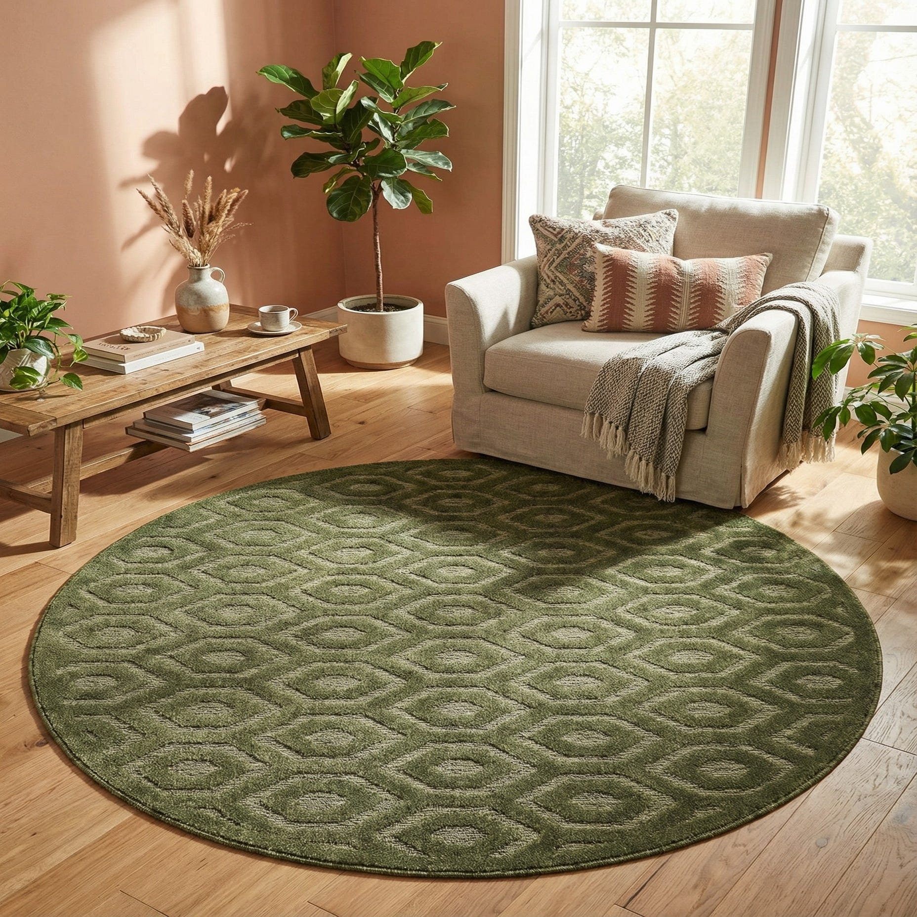 Primary image 7' x 7'  Washable Trellis Textured Indoor / Outdoor Round Rug