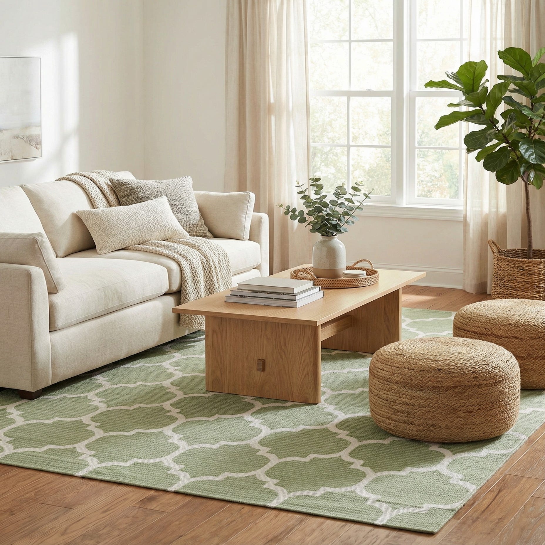 Primary color is Green. Colors in this rug include: Green, Ivory.