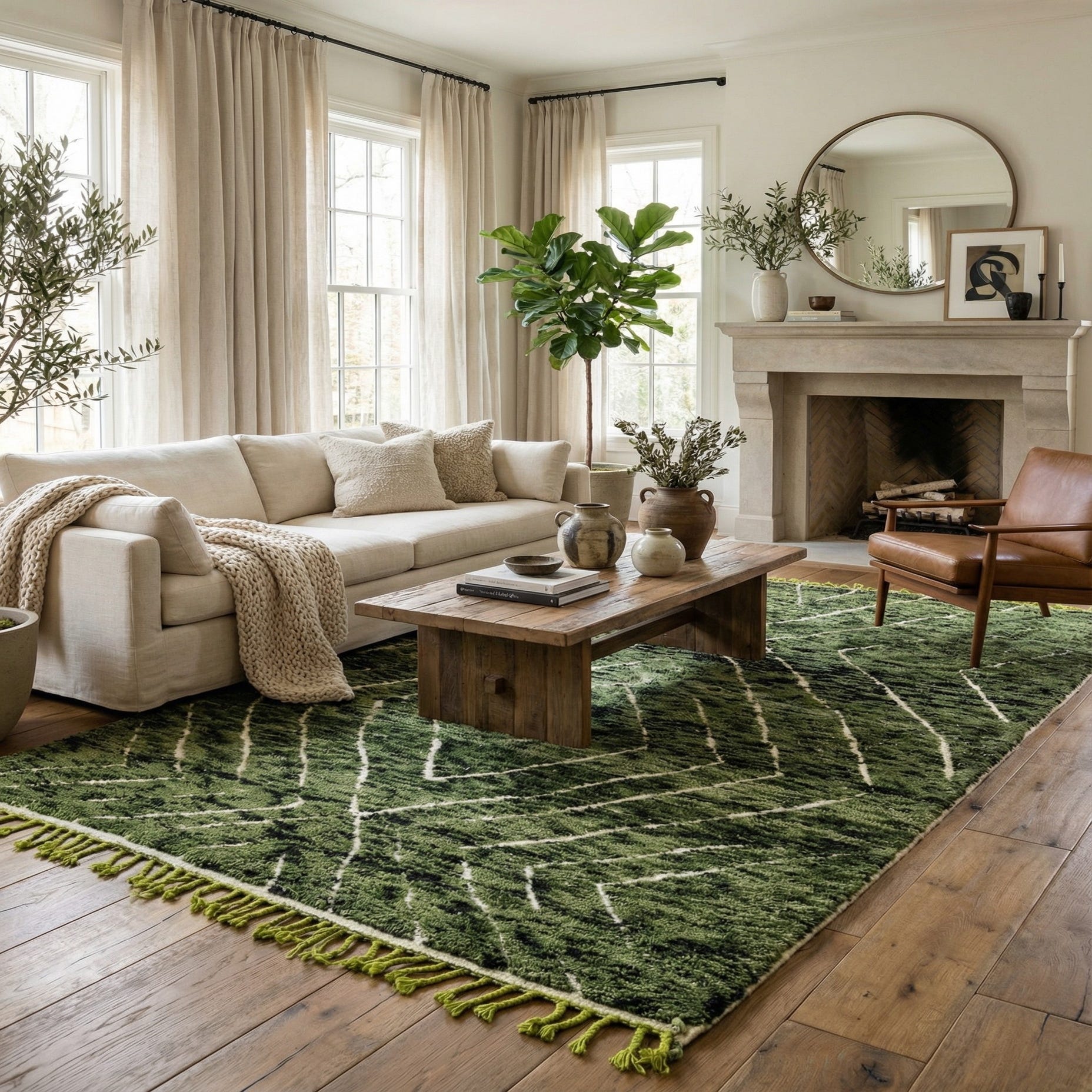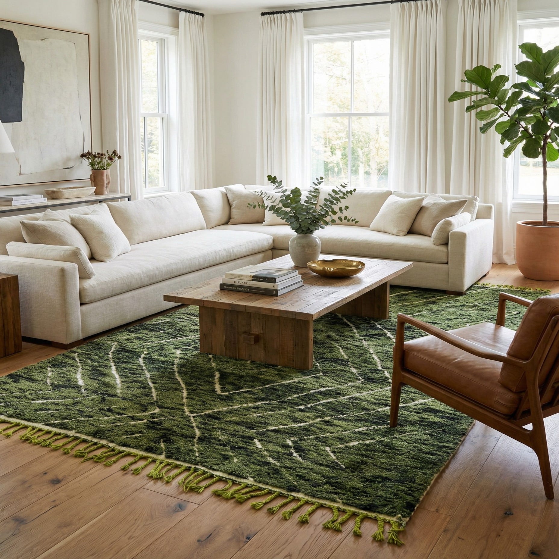 Primary color is Green. Colors in this rug include: Green, Ivory, Hunter Green.