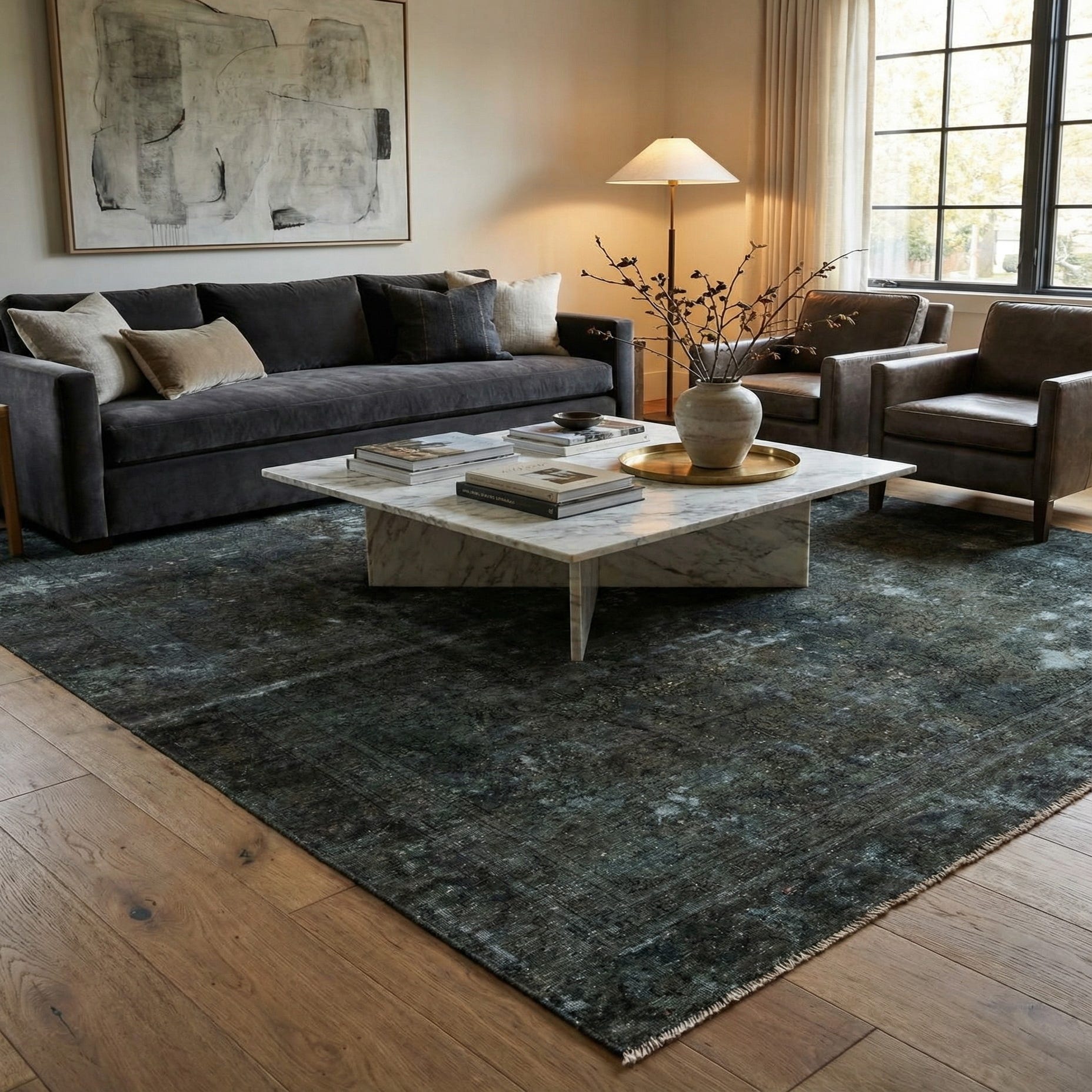 This Persian Ultra Vintage rug is an antique Persian Rug that has been washed, over-dyed, and then shaved down to a low pile. Look at the detail pictures to fully appreciate the uniqueness of this piece.