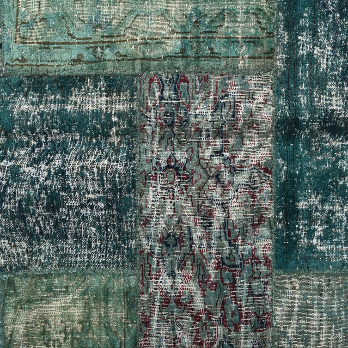 This Persian Ultra Vintage rug is an antique Persian Rug that has been washed, over-dyed, and then shaved down to a low pile. Look at the detail pictures to fully appreciate the uniqueness of this piece.