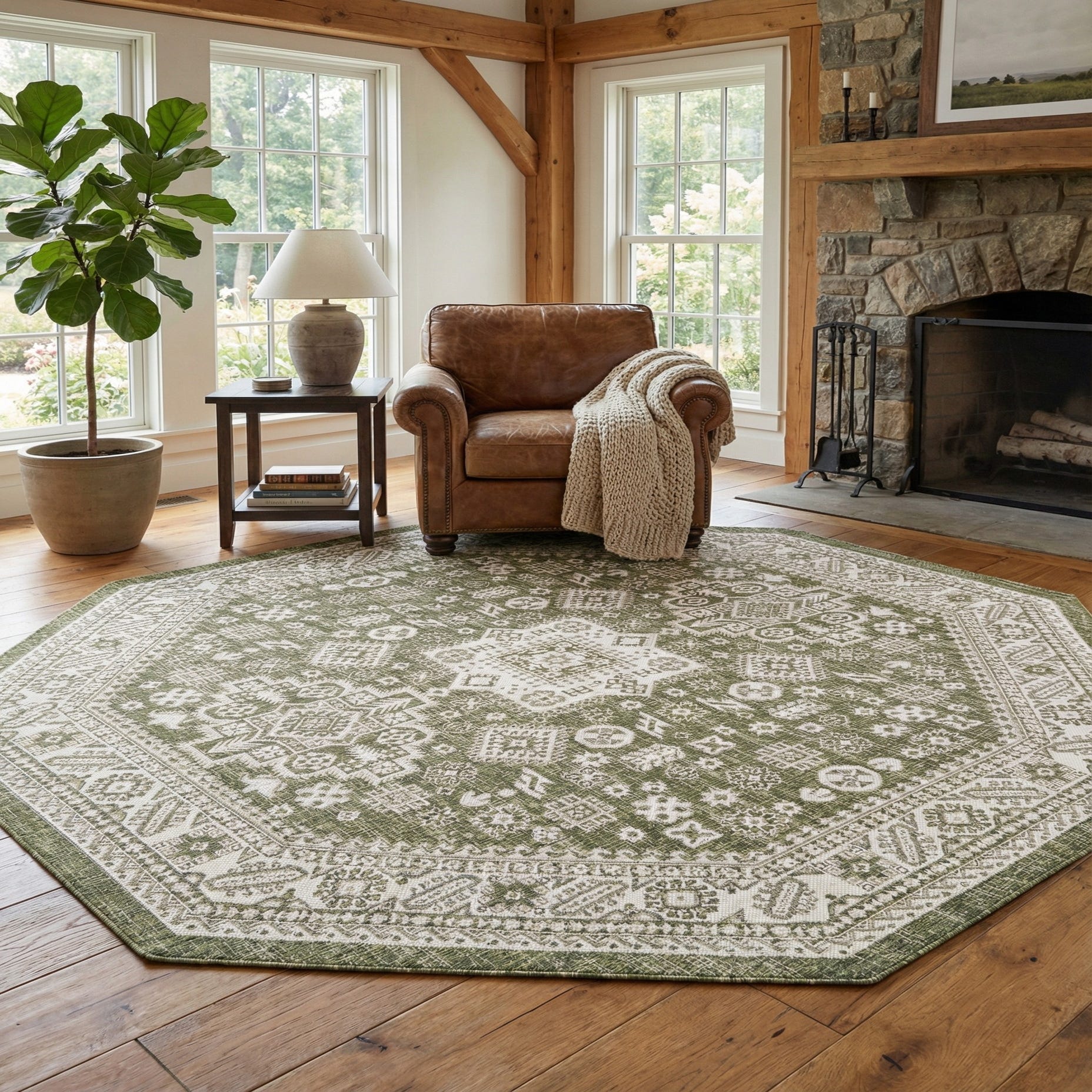Primary image 7' 10 x 7' 10  Washable Aztec Indoor / Outdoor Octagon Rug