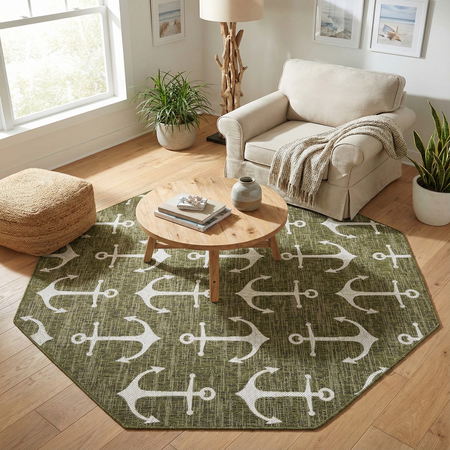 7' 10 x 7' 10 Washable Coastal Indoor / Outdoor Octagon Rug