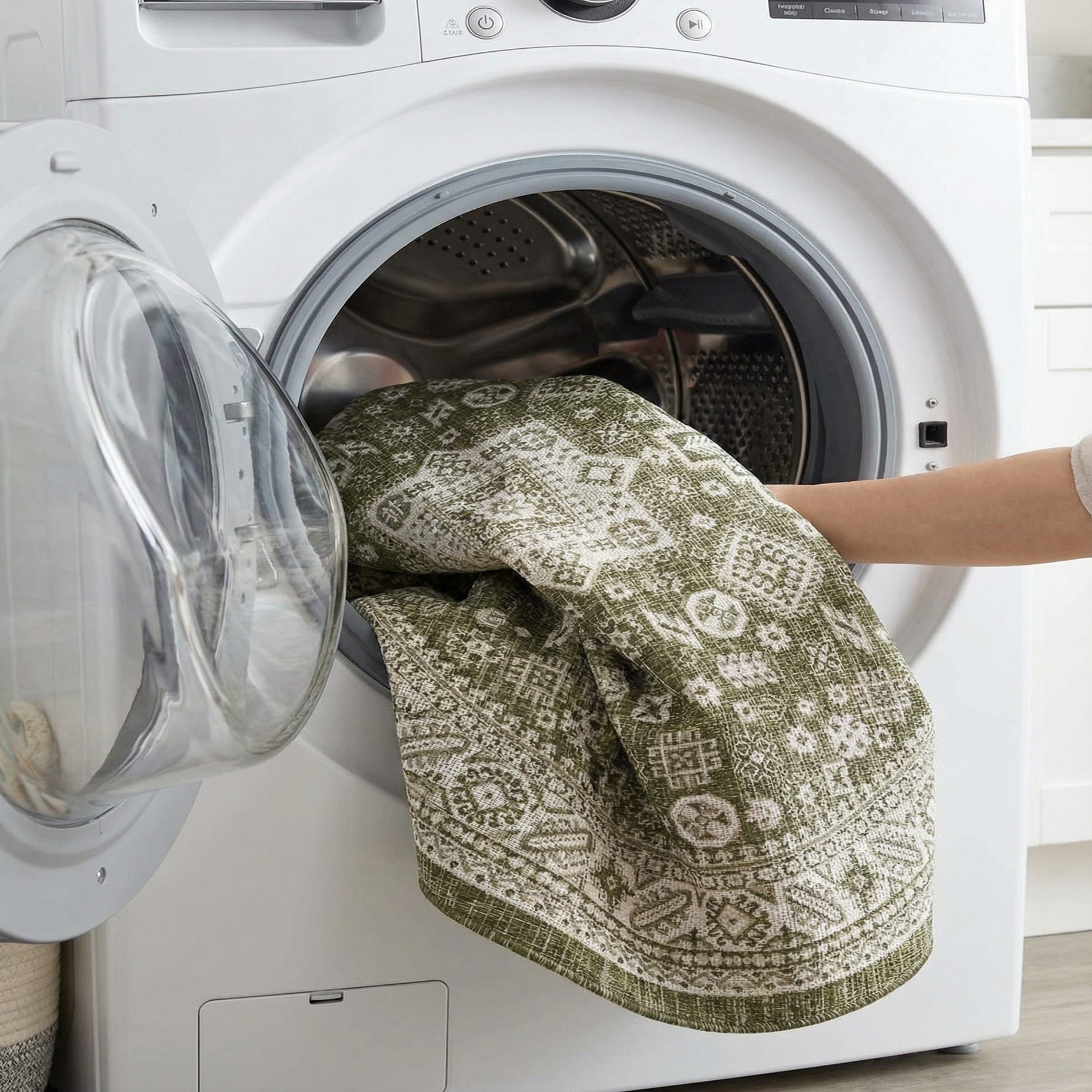 Primary color is Green. Colors in this rug include: Green, Ivory.