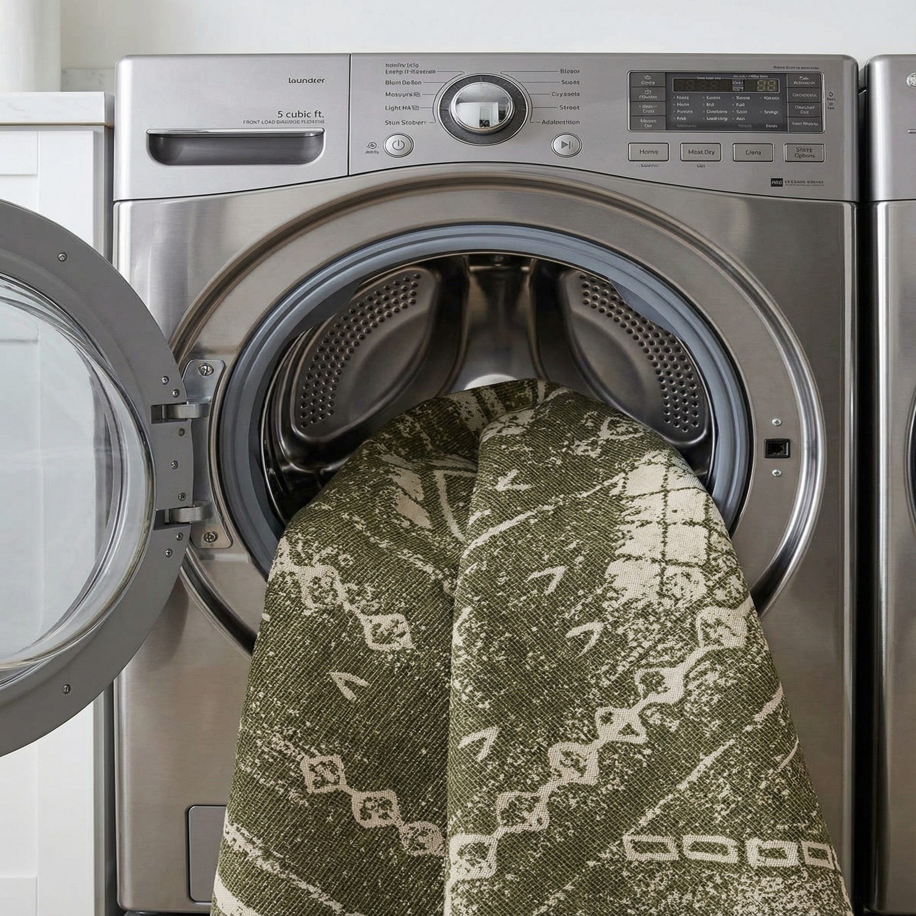 Primary color is Green. Colors in this rug include: Green, Ivory.