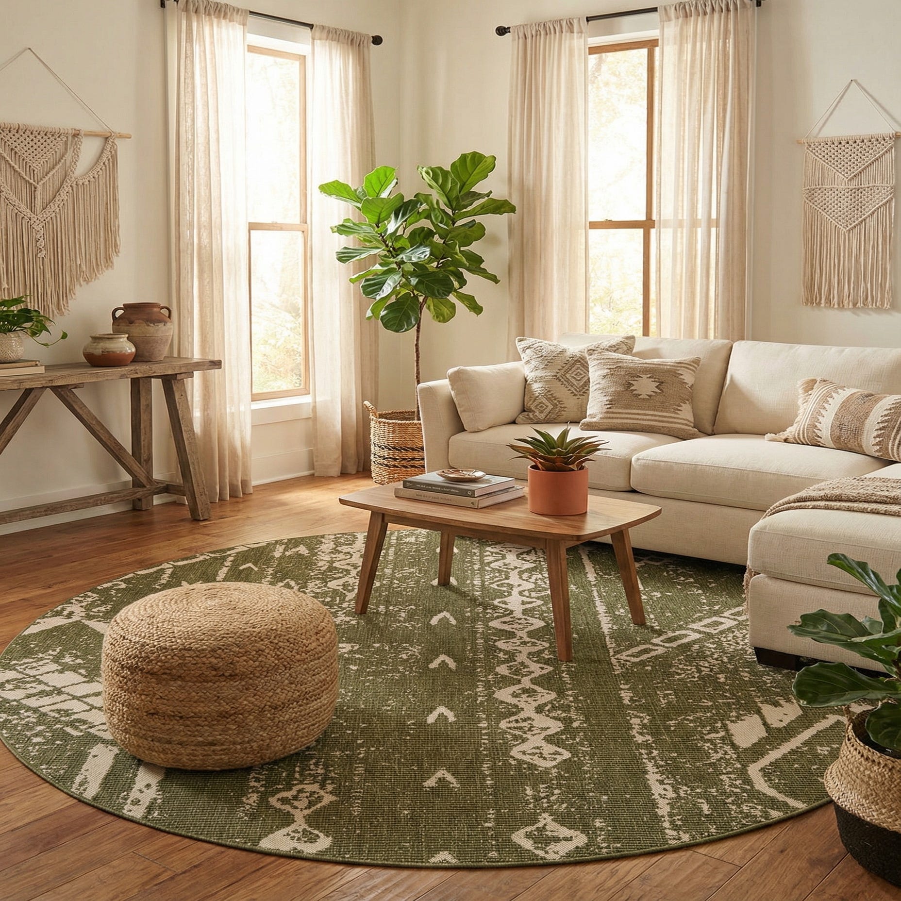 7' 10 x 7' 10 Washable Bohemian Indoor / Outdoor Round Rug