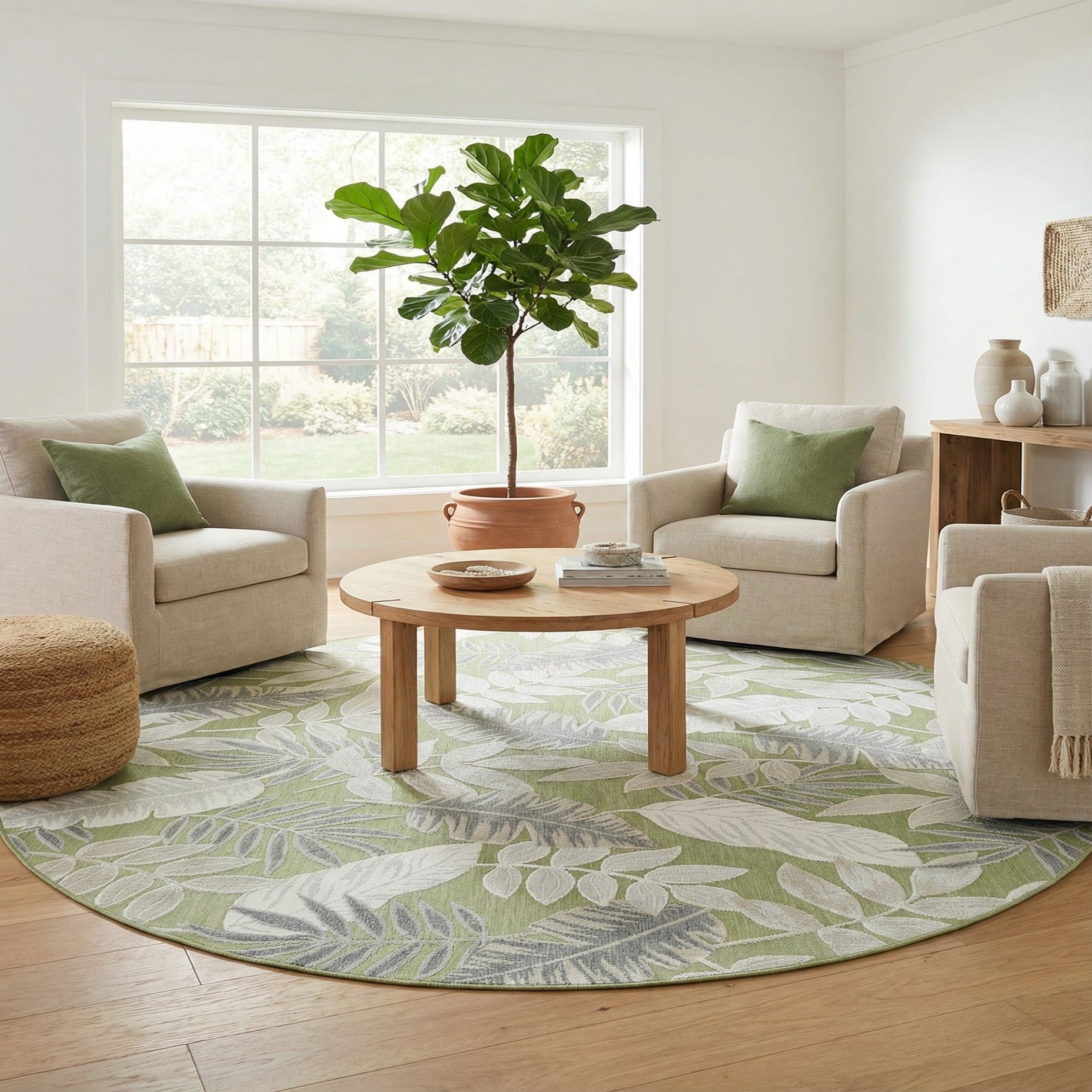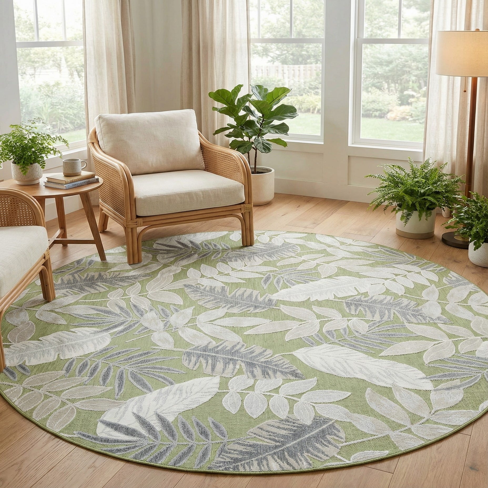 8' 2 x 8' 2 Washable Botanical Indoor / Outdoor Round Rug