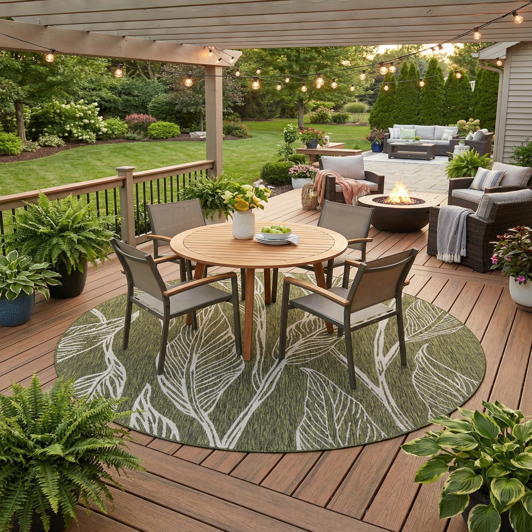 Detail image of 7' 10 x 7' 10  Washable Botanical Indoor / Outdoor Round Rug