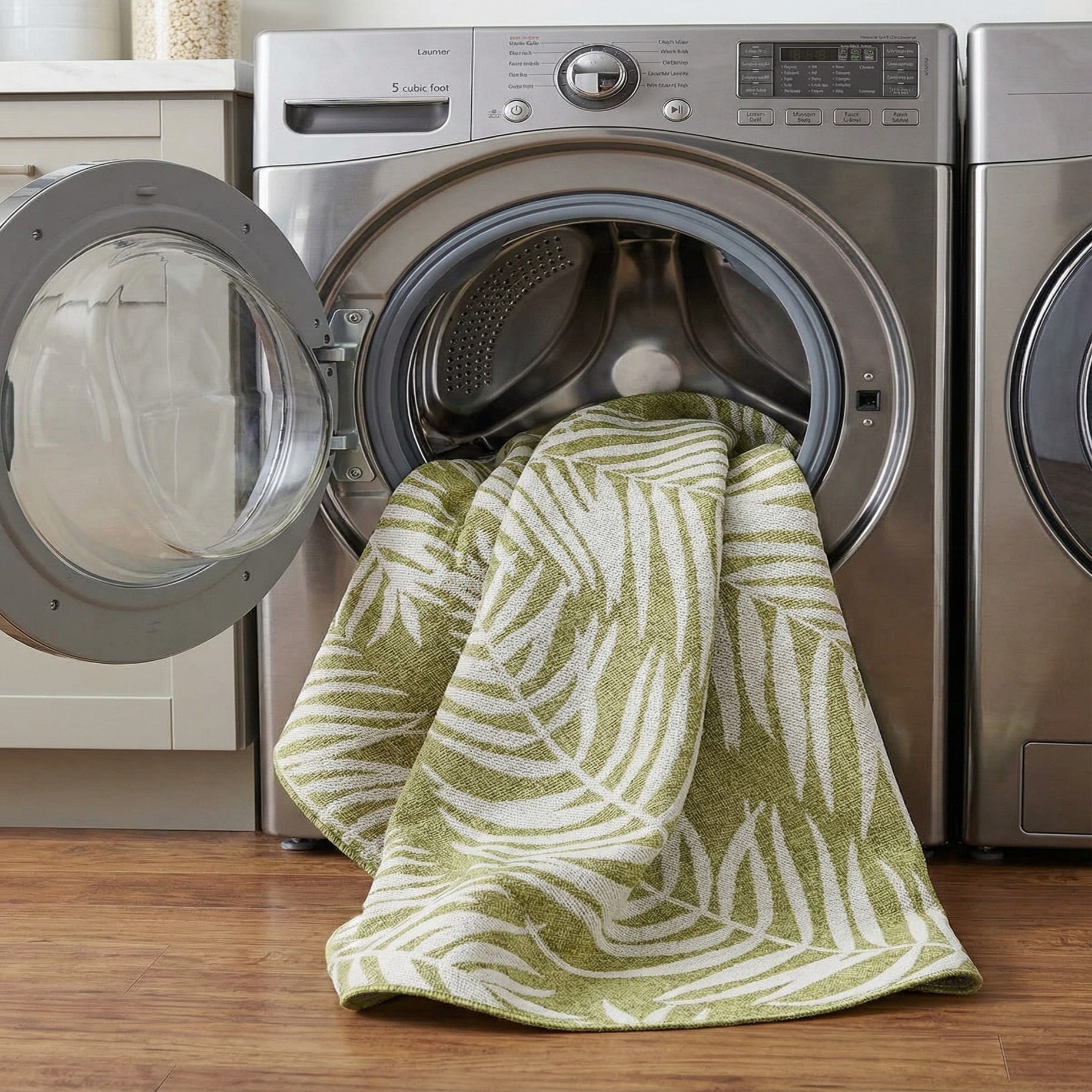 Primary image 7' 10 x 7' 10  Washable Botanical Indoor / Outdoor Round Rug
