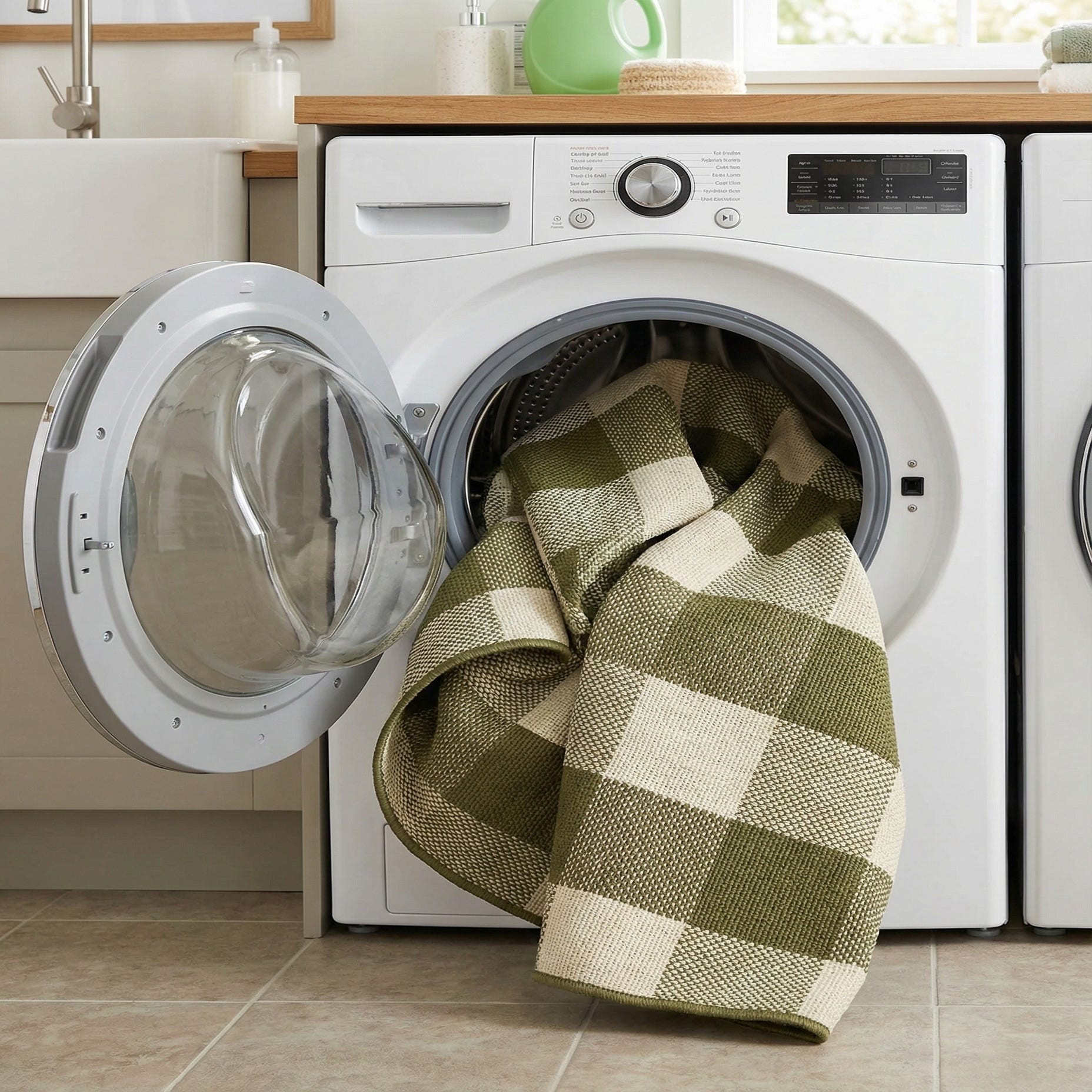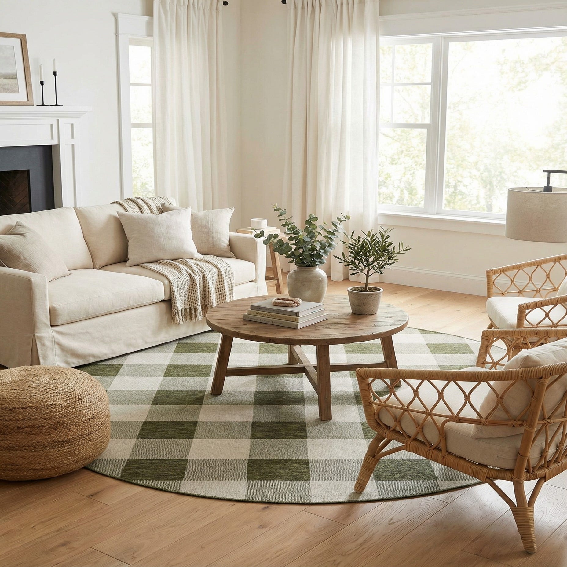 7' 10 x 7' 10 Washable Checkered Indoor / Outdoor Round Rug