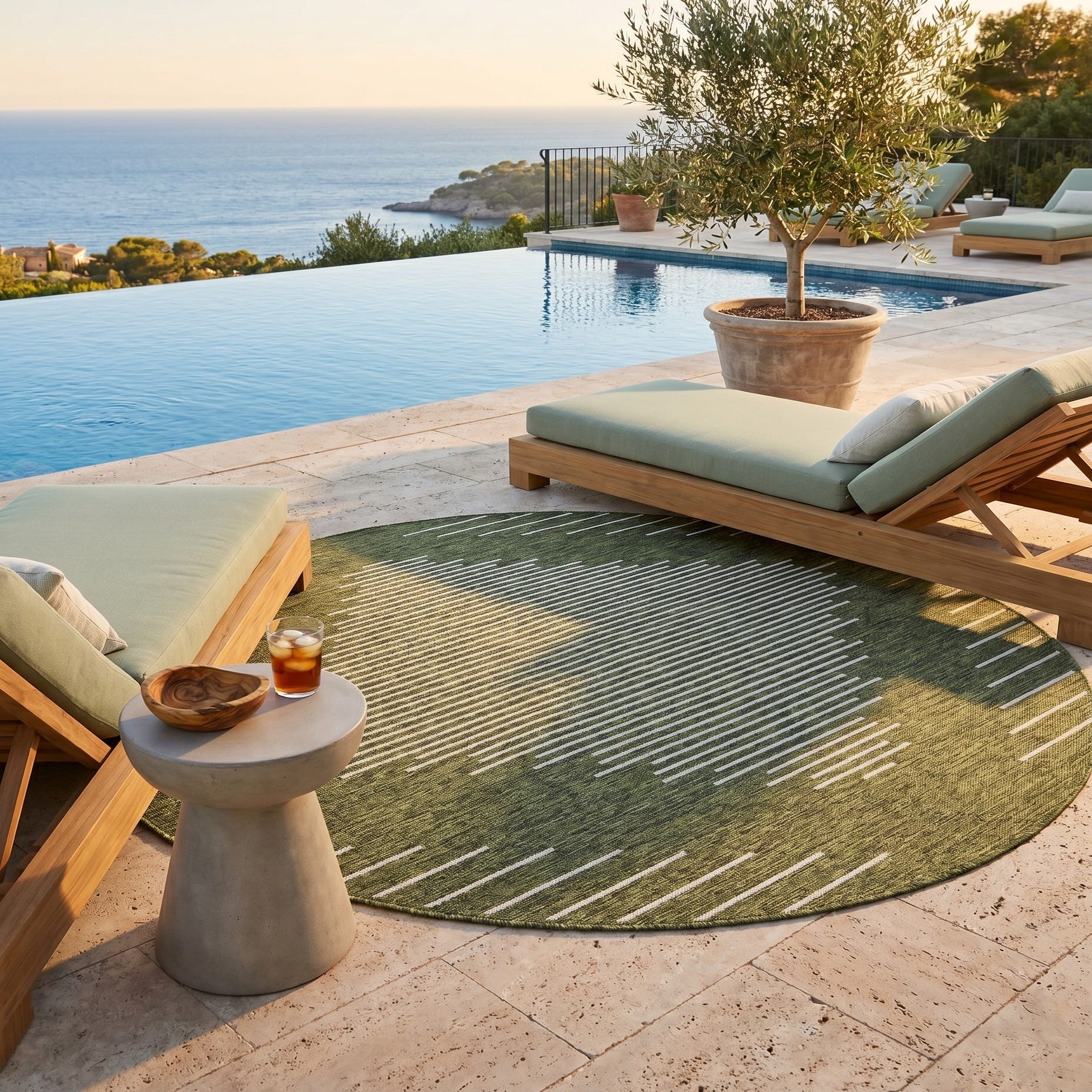 7' 10 x 7' 10 Easy-Clean Modern Indoor / Outdoor Round Rug