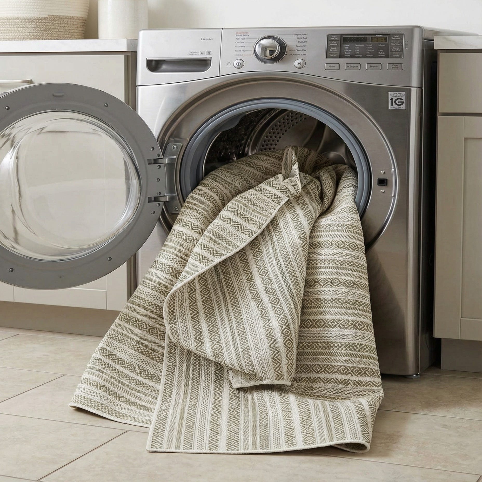 7' 10 x 7' 10 Washable Striped Indoor / Outdoor Round Rug