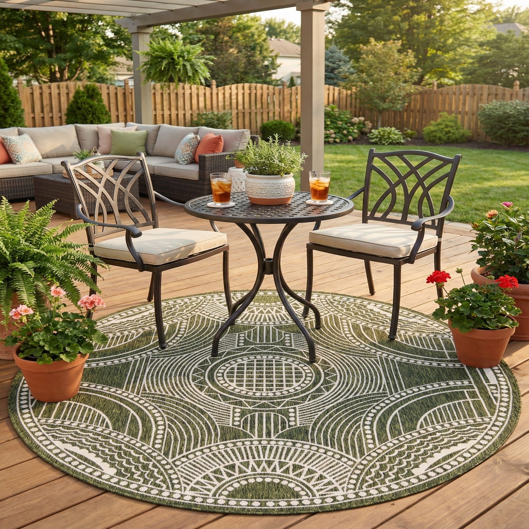 Detail image of 7' 10 x 7' 10  Washable Traditional Indoor / Outdoor Round Rug
