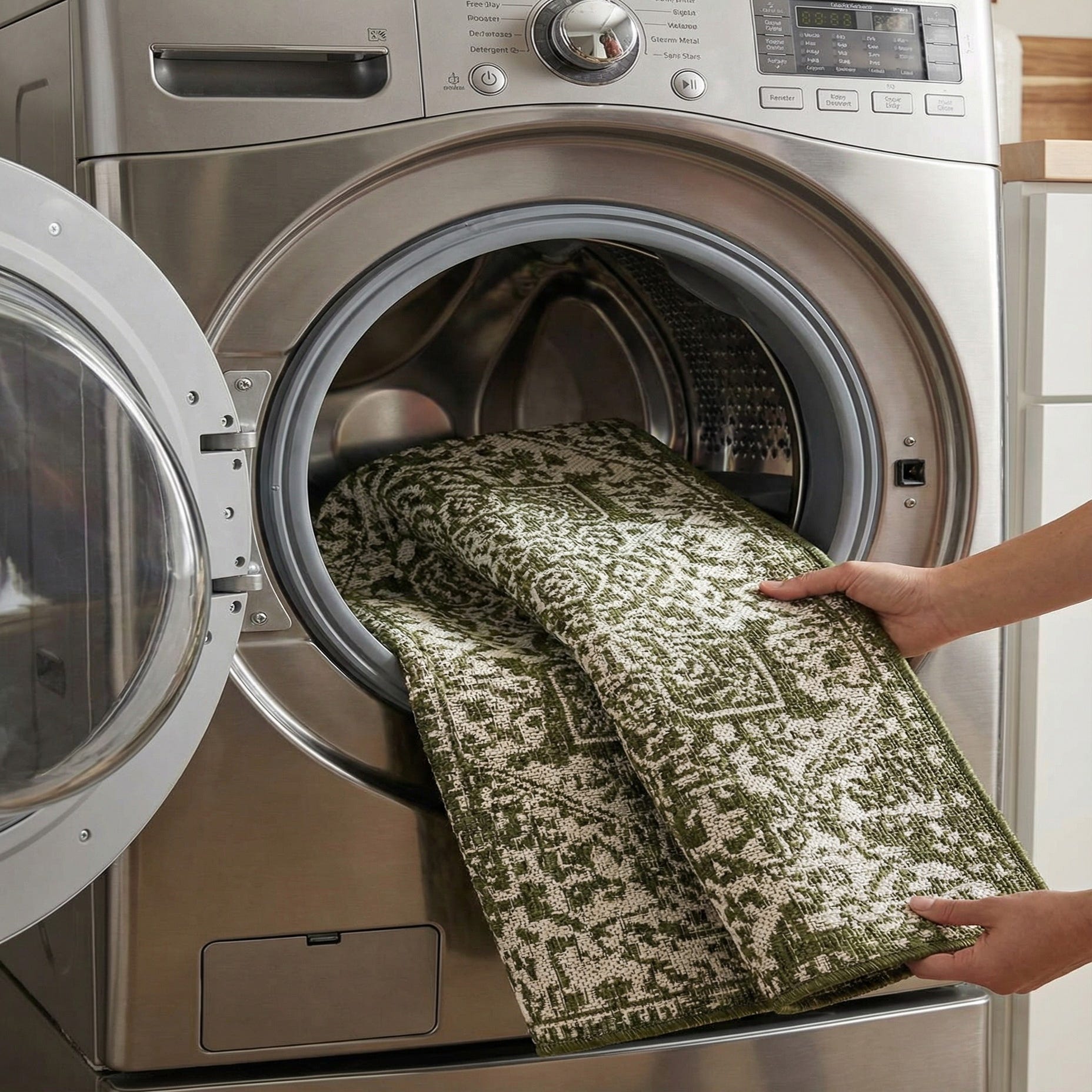 Primary color is Green. Colors in this rug include: Green, Ivory.