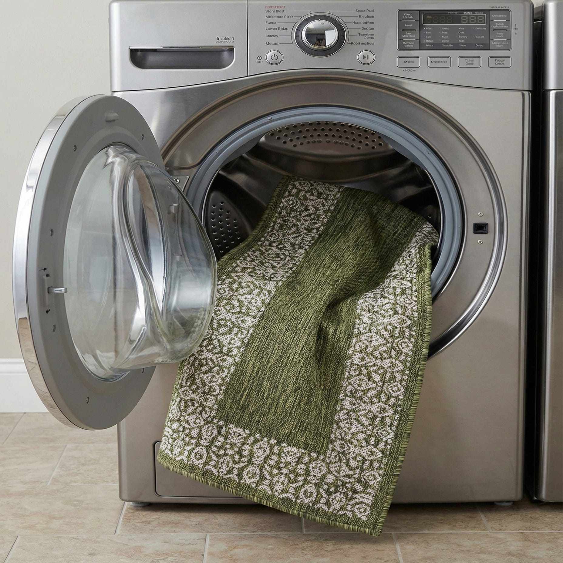 2' x 8' Washable Border Indoor / Outdoor Runner Rug