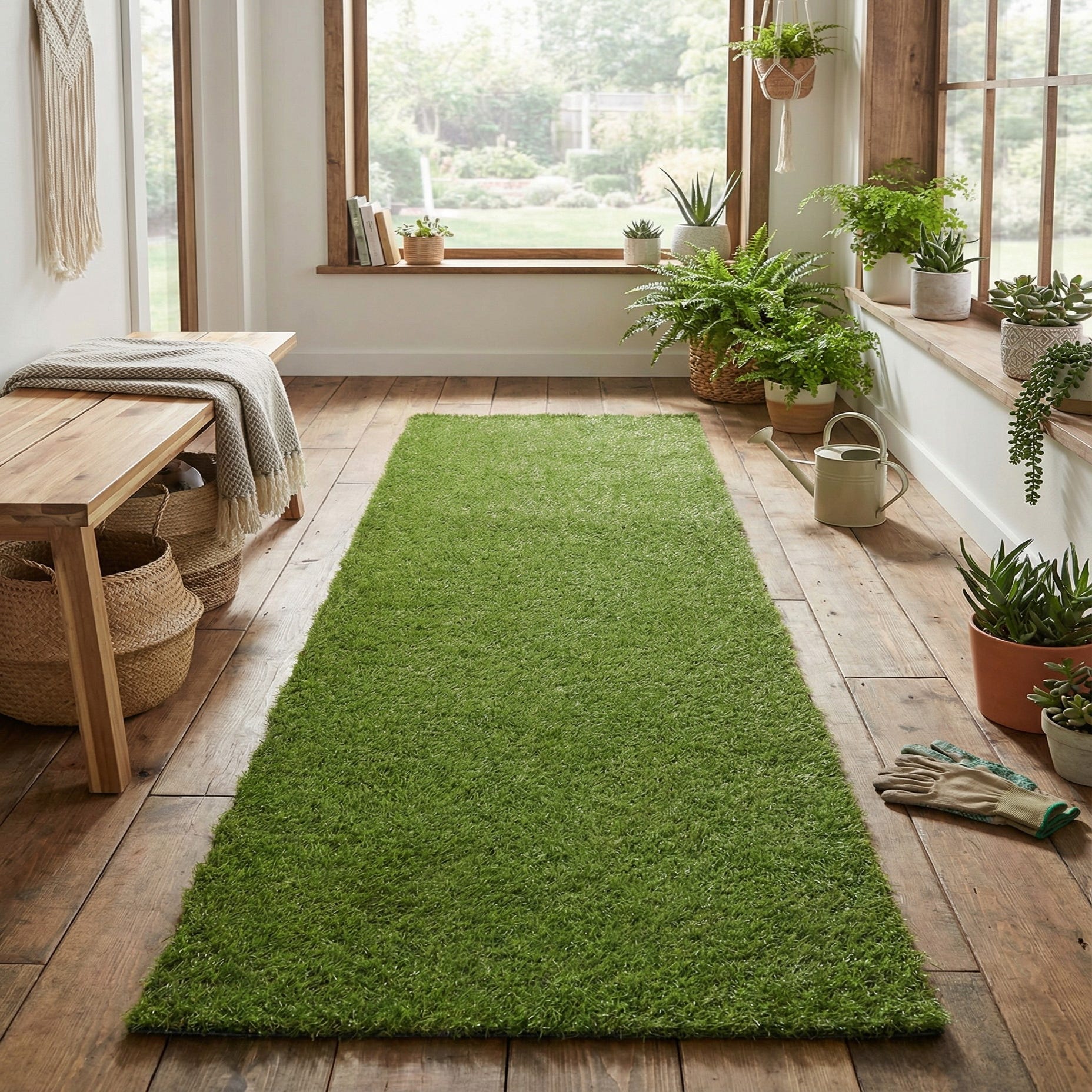 2' 7 x 8' Washable Grass Indoor / Outdoor Runner Rug