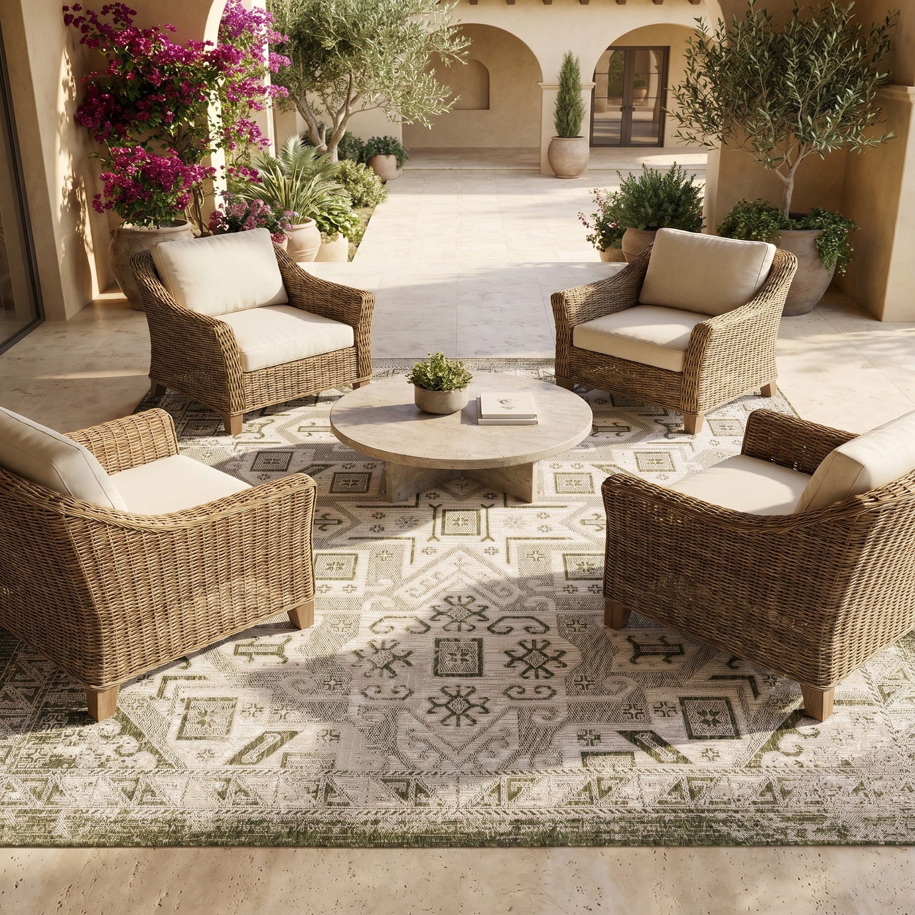 7' 10 x 7' 10 Easy-Clean Aztec Indoor / Outdoor Square Rug
