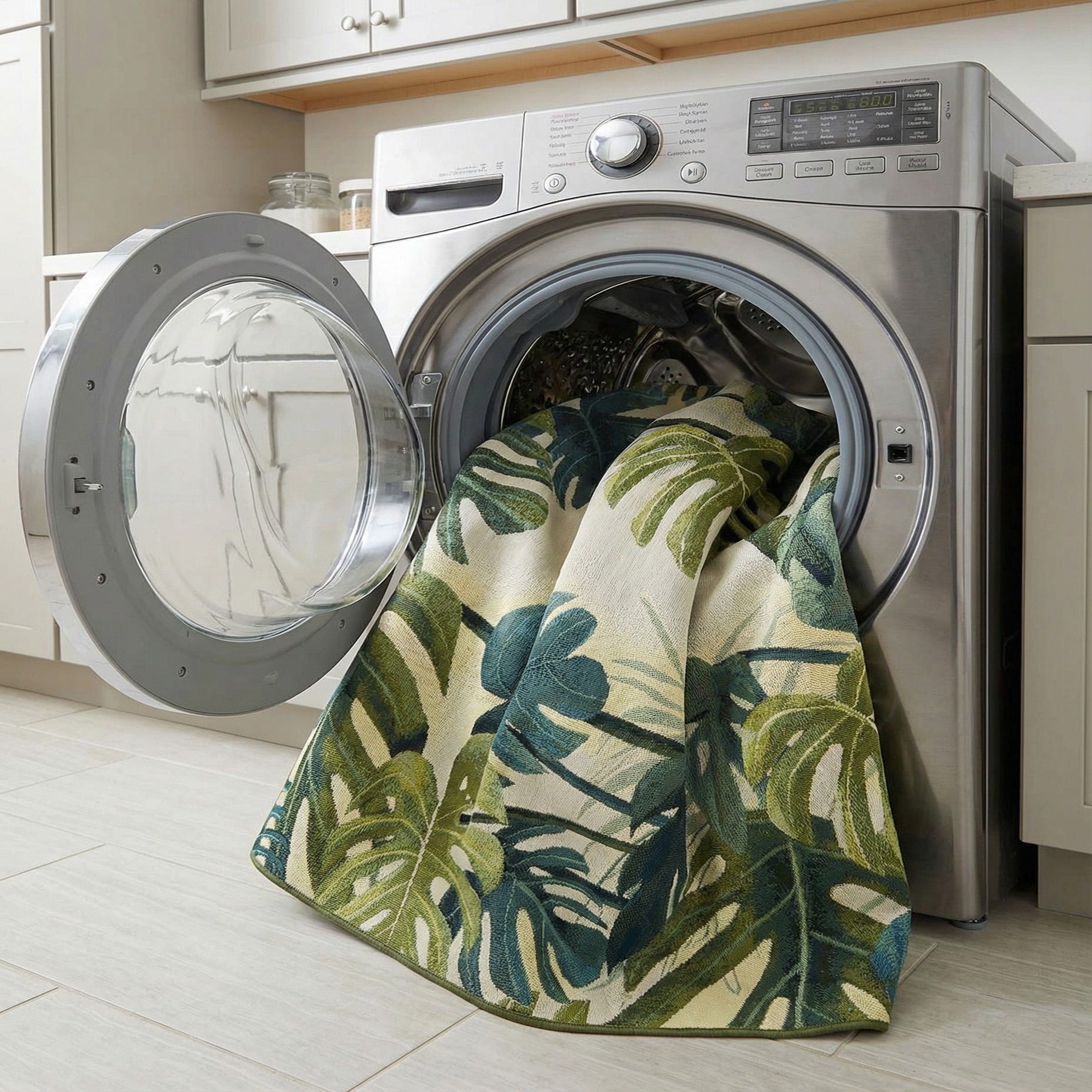 Primary image 7' 10 x 7' 10  Washable Botanical Indoor / Outdoor Square Rug