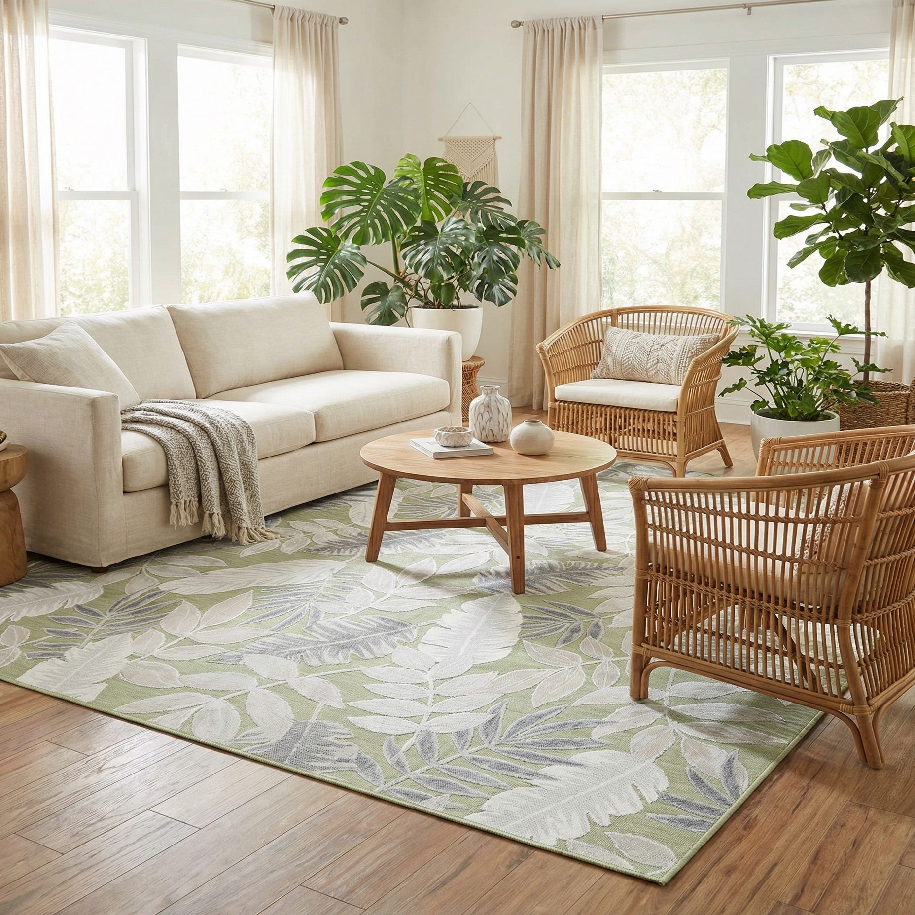 Primary image 8' 2 x 8' 2  Washable Botanical Indoor / Outdoor Square Rug