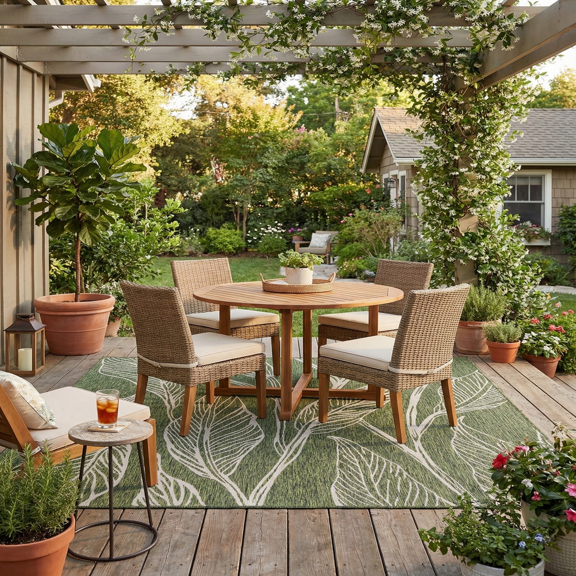 7' 10 x 7' 10 Washable Botanical Indoor / Outdoor Square Rug
