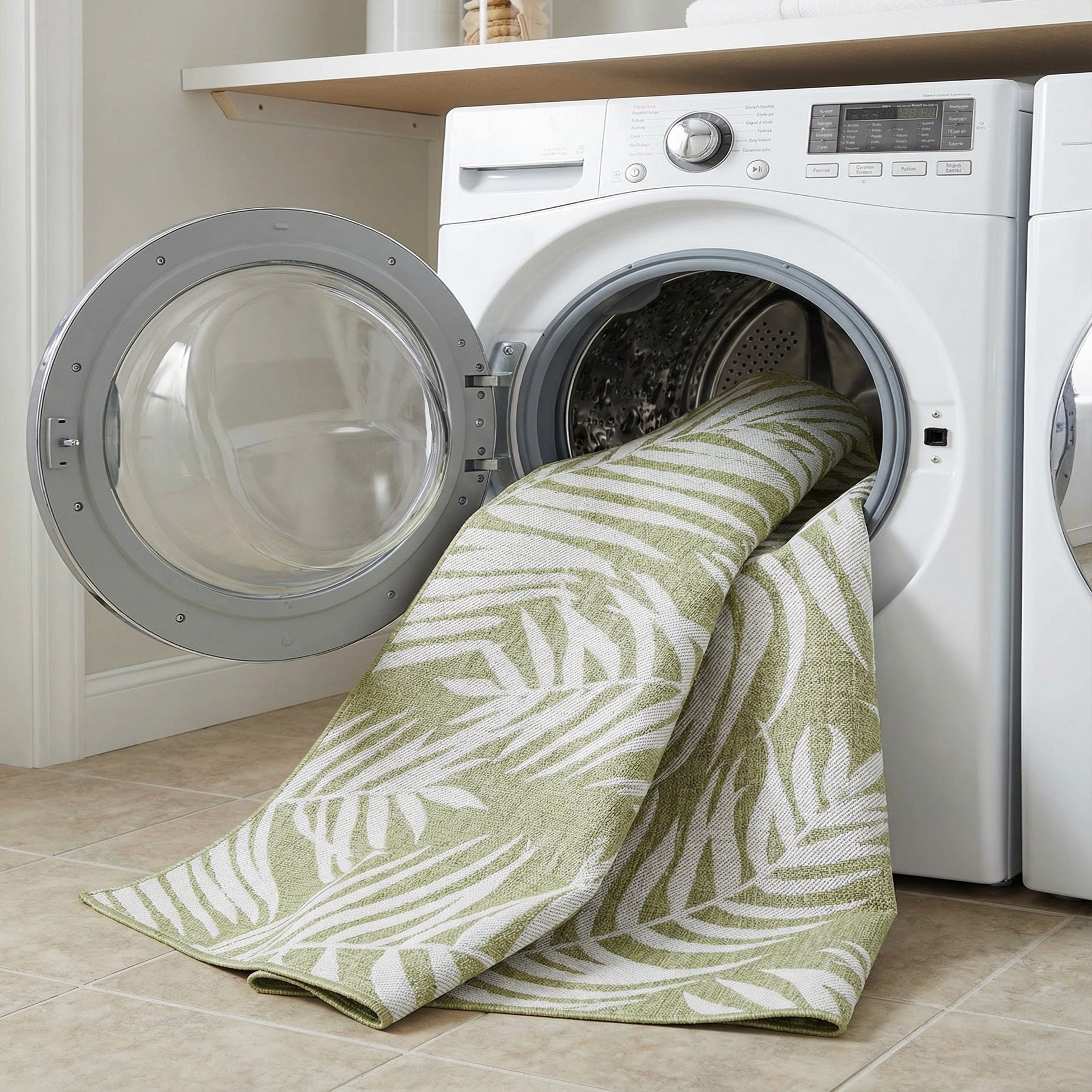 Primary image 7' 10 x 7' 10  Washable Botanical Indoor / Outdoor Square Rug