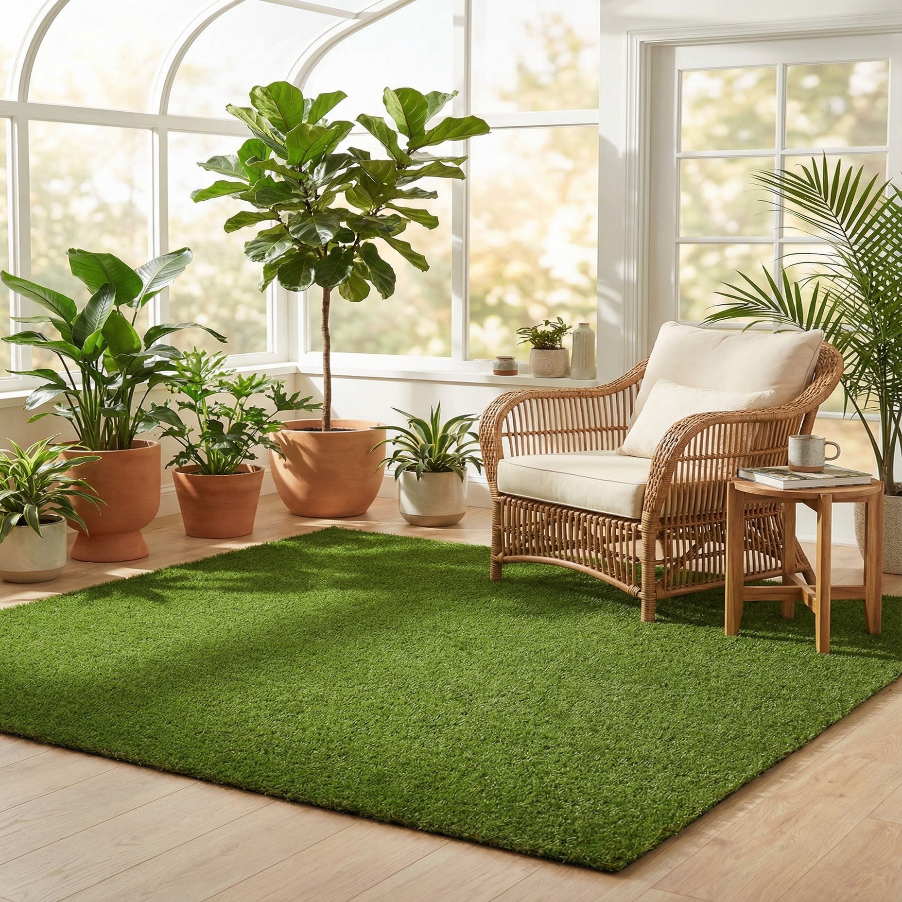 7' 10 x 7' 10 Washable Grass Indoor / Outdoor Square Rug