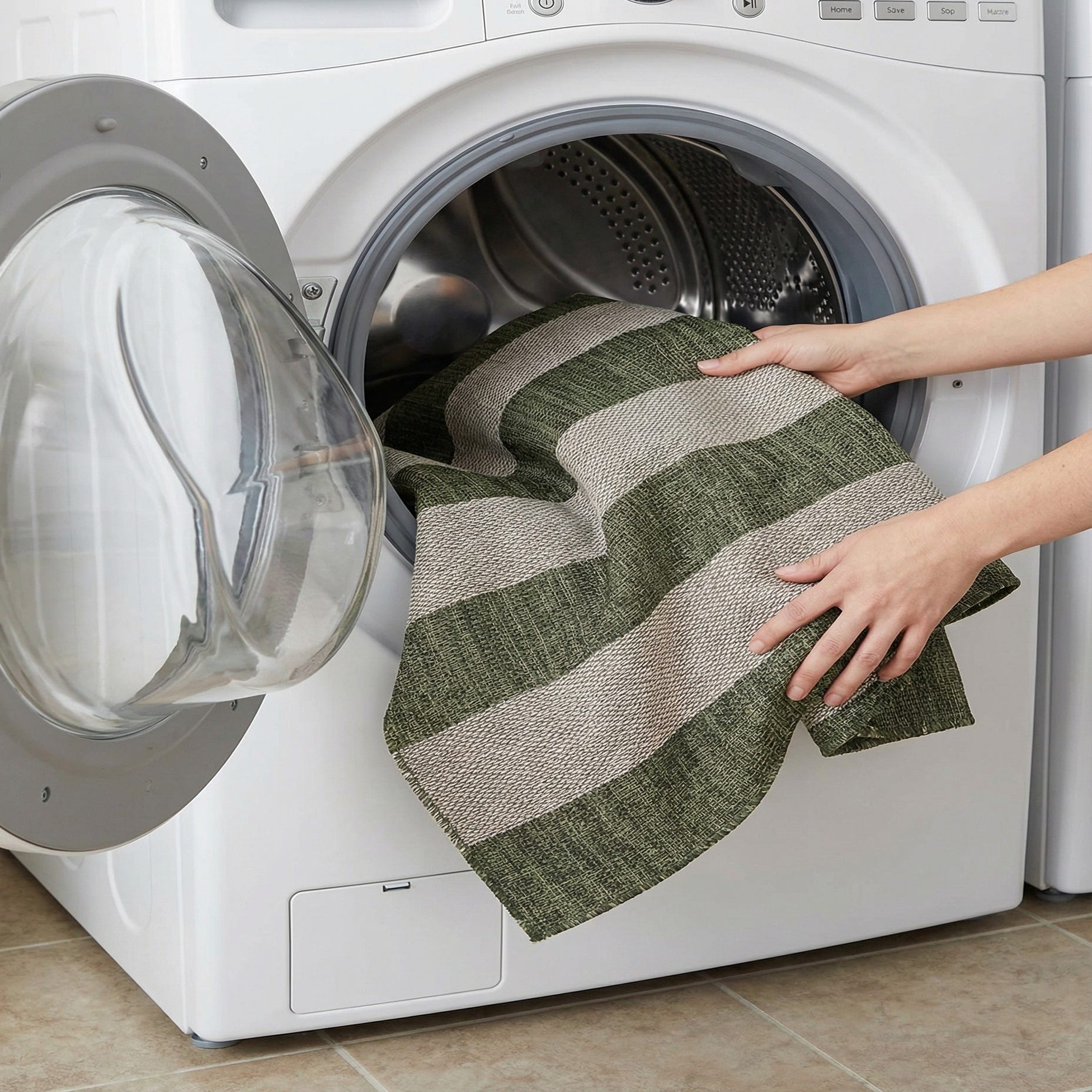 Detail image of 7' 10 x 7' 10  Washable Striped Indoor / Outdoor Square Rug