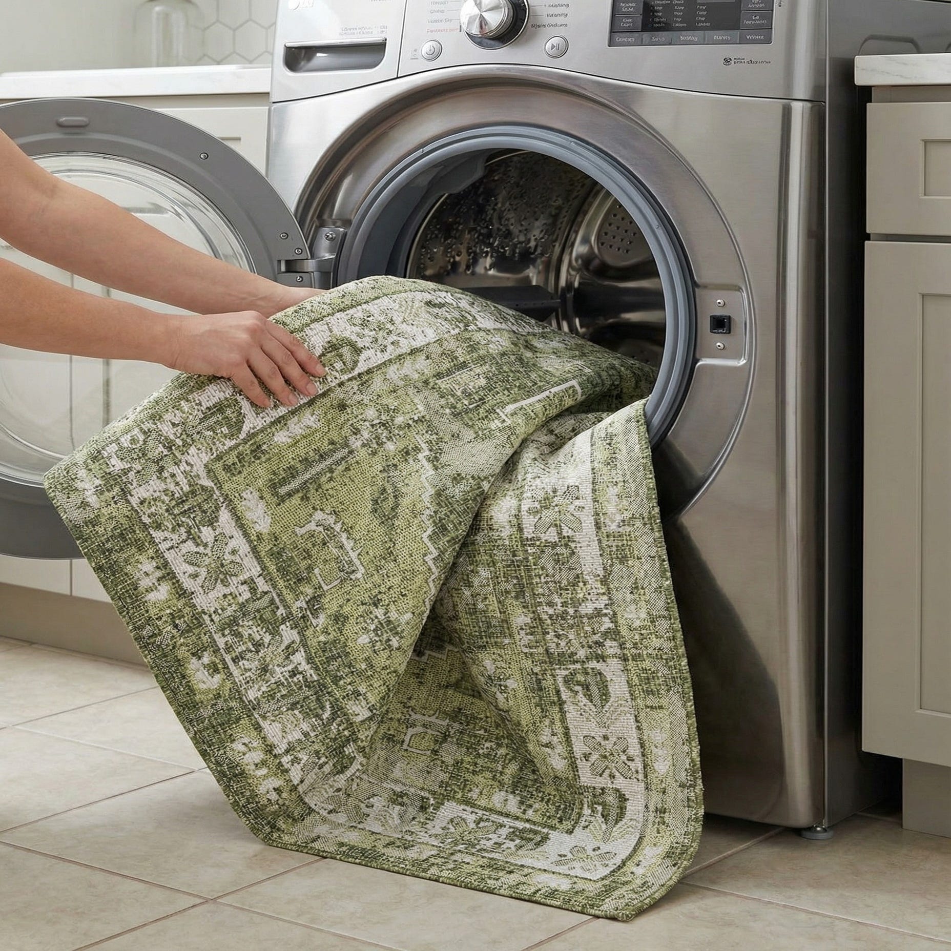 Detail image of 7' 10 x 7' 10  Washable Traditional Indoor / Outdoor Square Rug