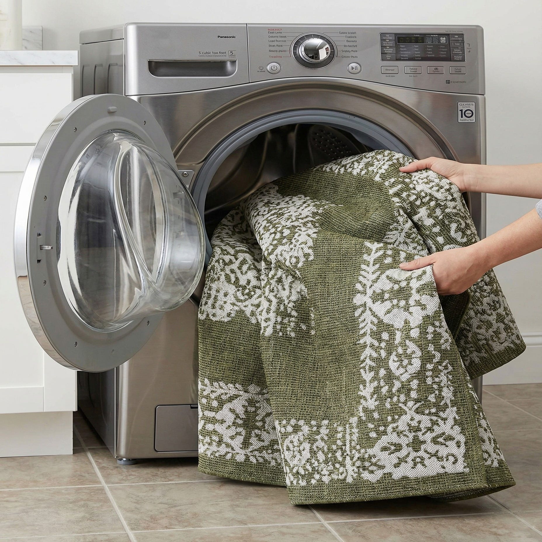 Detail image of 7' 10 x 7' 10  Washable Traditional Indoor / Outdoor Square Rug