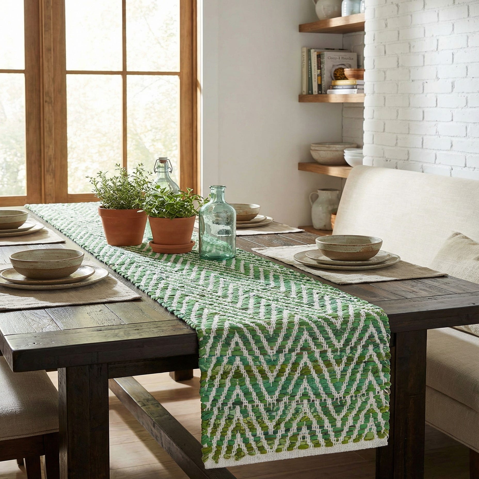1' 2 x 8' Hand Woven Chindi Chevron Table Runner Rug