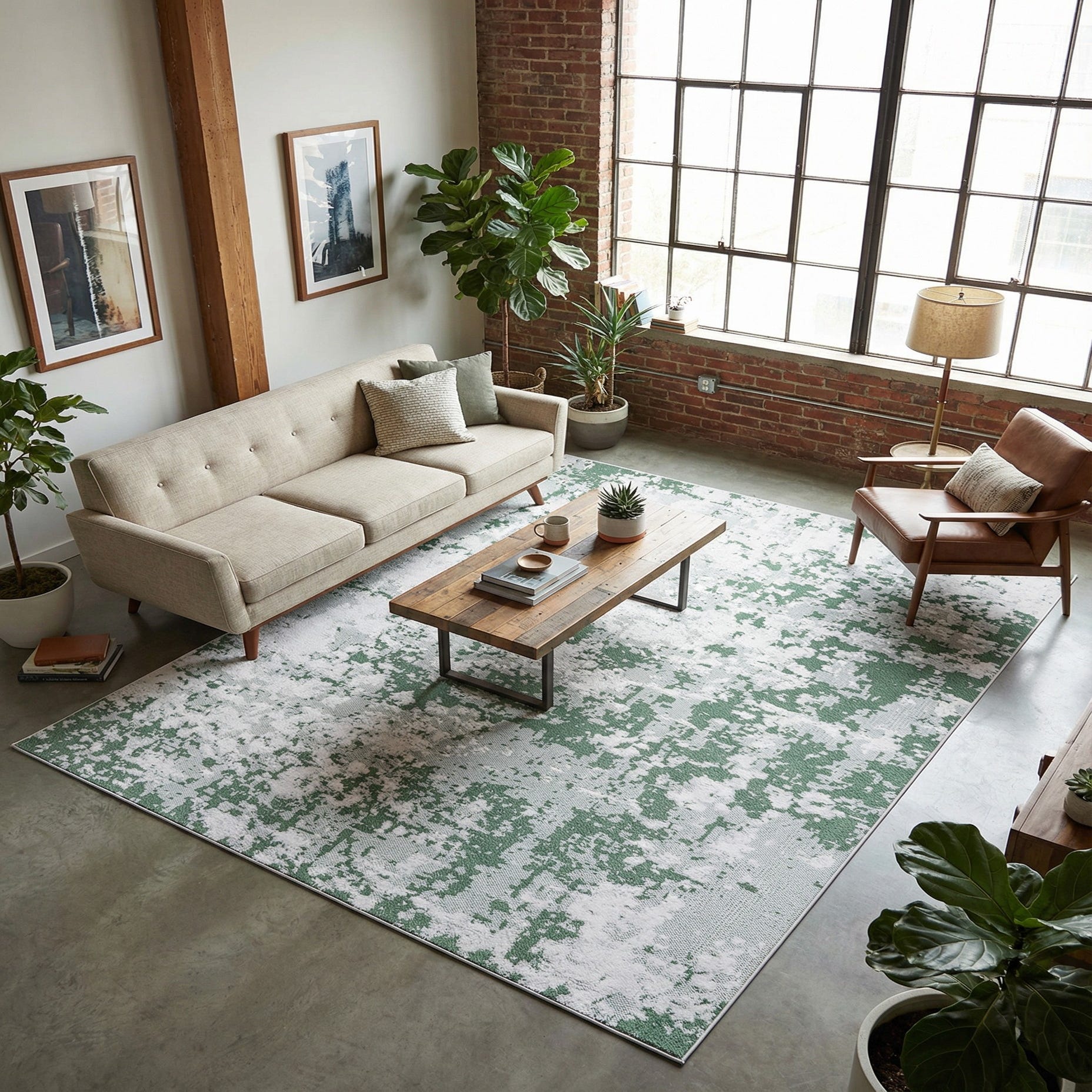 Primary color is Green. Colors in this rug include: Green, Ivory.
