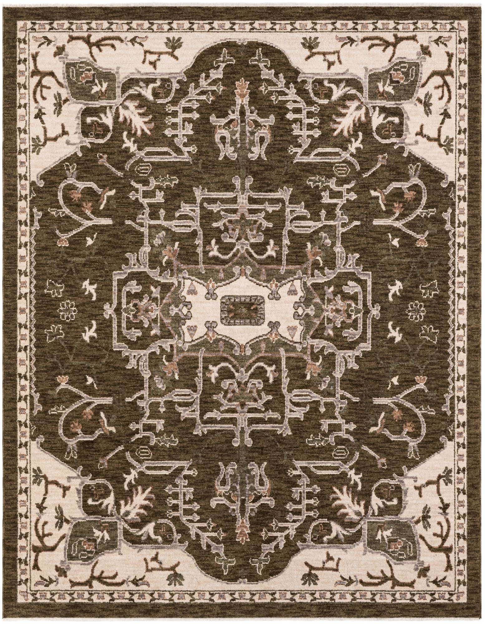 Primary color is Green. Colors in this rug include: Green, Beige, Ivory, Gray.