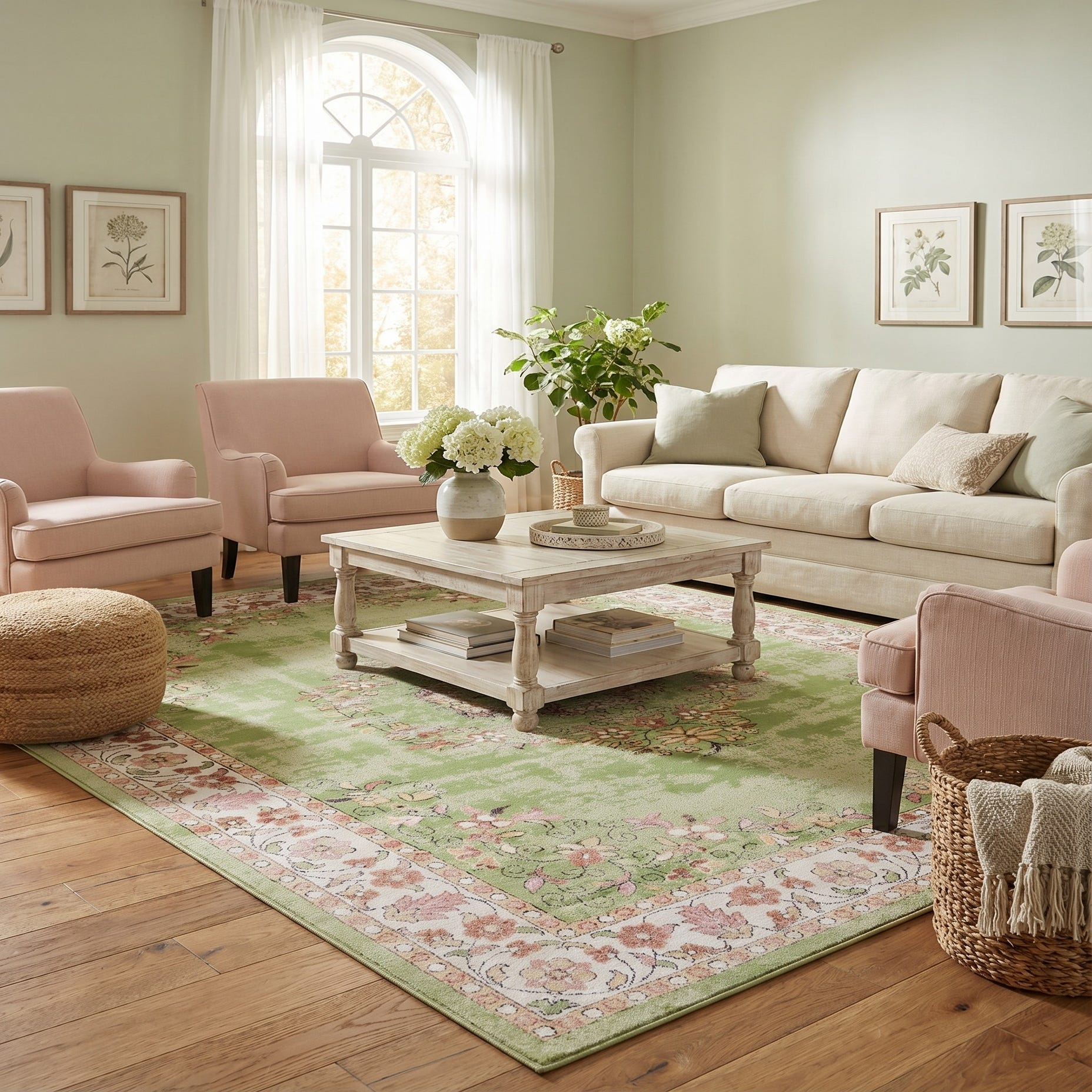 This rug has become the design inspiration for my whole house! I was tired of all the grey and tan and this was the perfect solution. The rug lays nice and flat in a high traffic area no tripping on bent up corners. It was folded when it came but the creases have all flattened out nicely with no extra effort on my part. I get a lot of compliments on it.