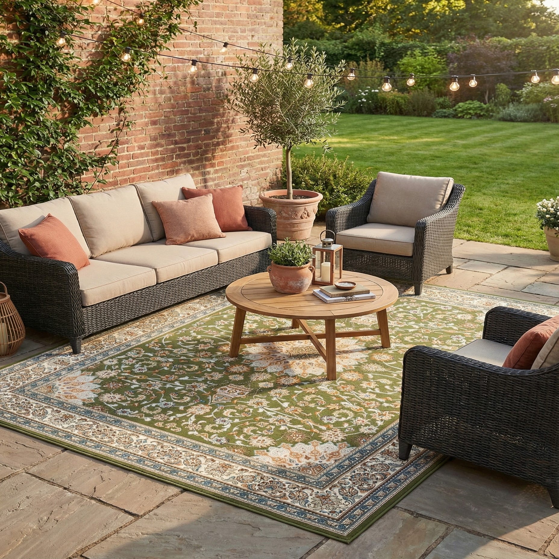 Detail image of 7' 10 x 10'  Washable Traditional Indoor / Outdoor Rug