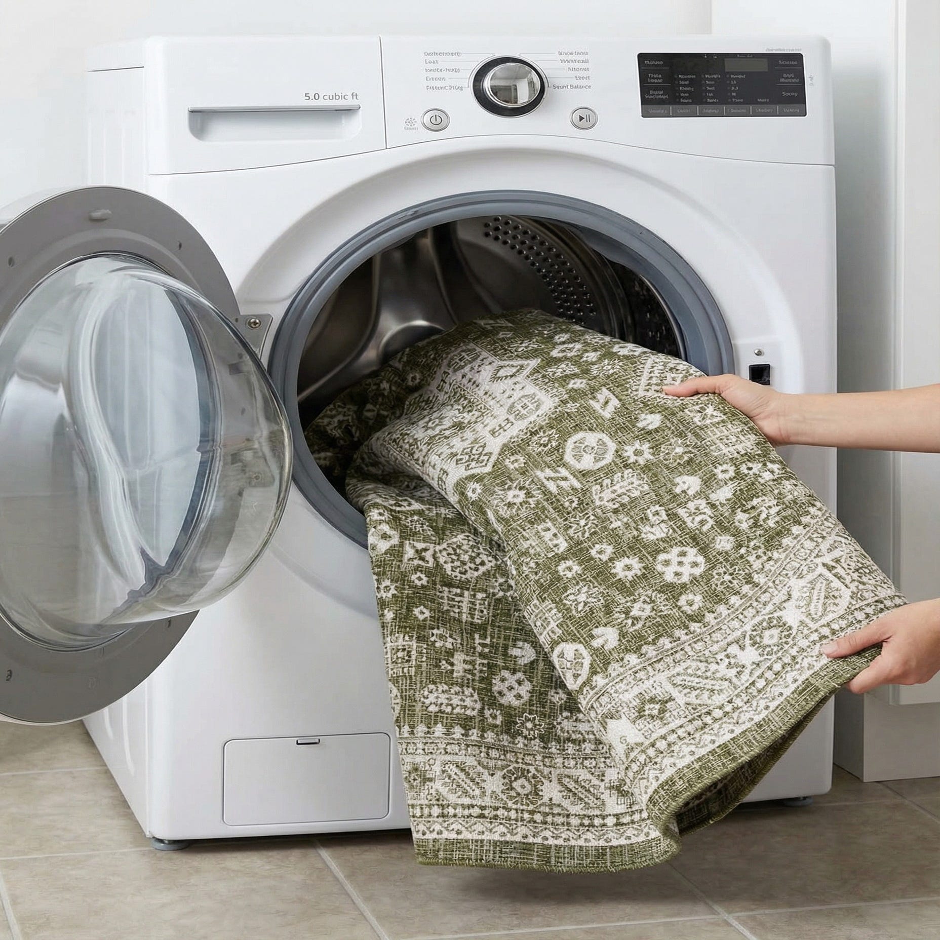 Primary color is Green. Colors in this rug include: Green, Ivory.