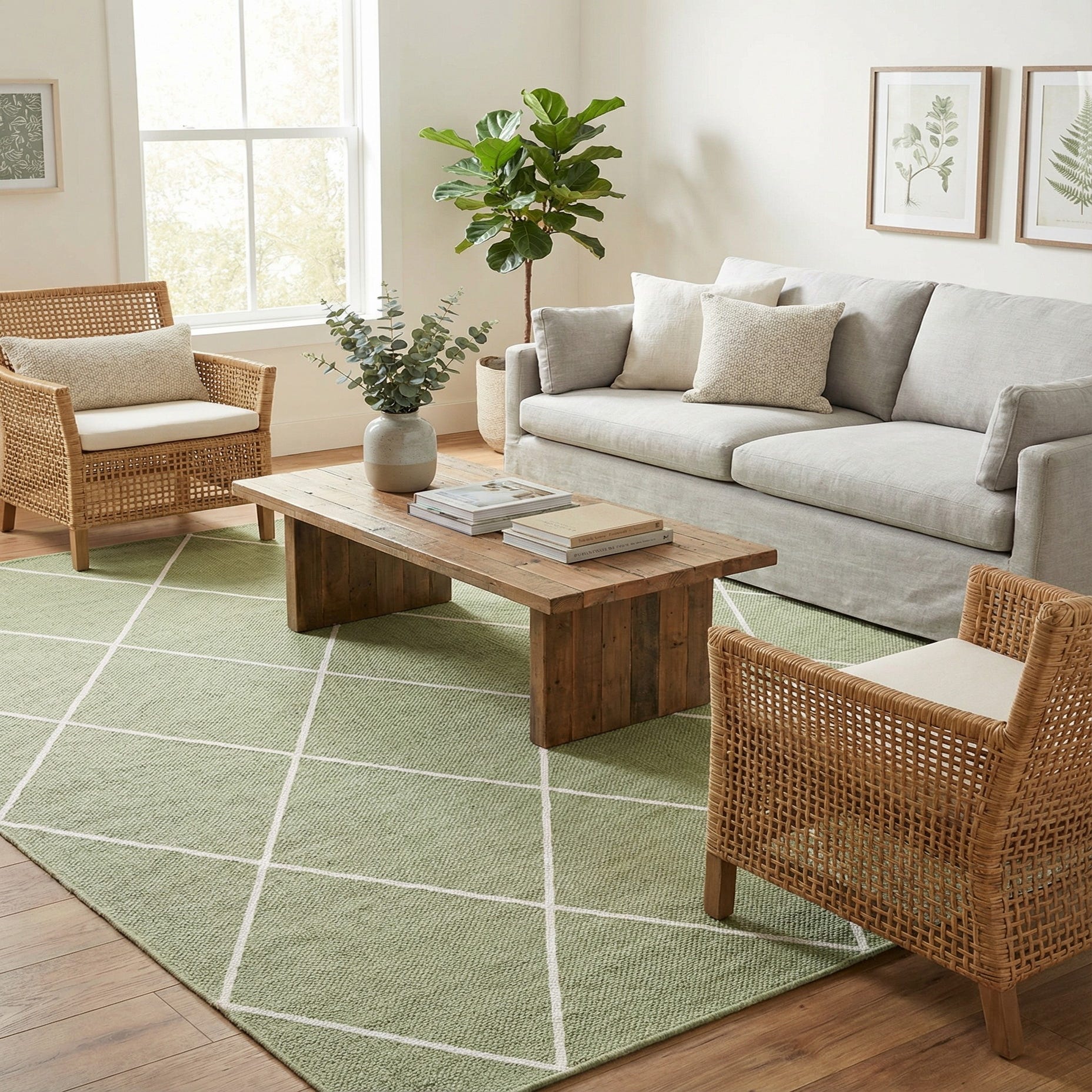 Primary color is Green. Colors in this rug include: Green, Ivory.
