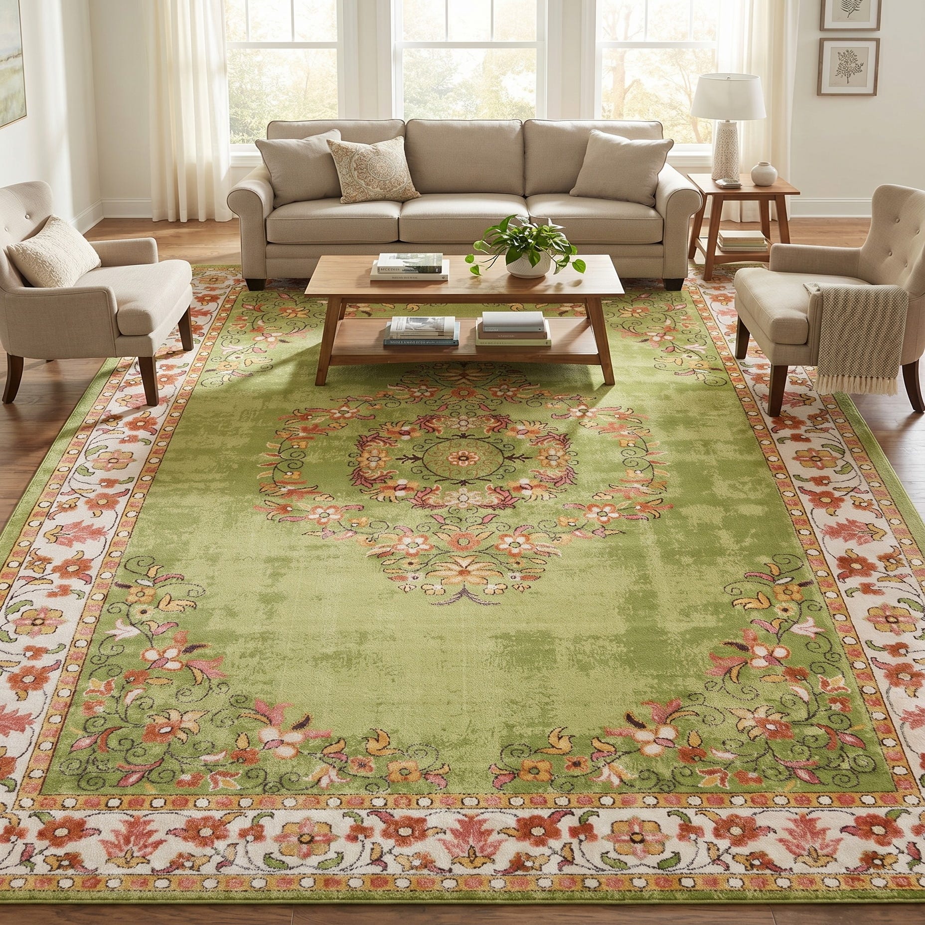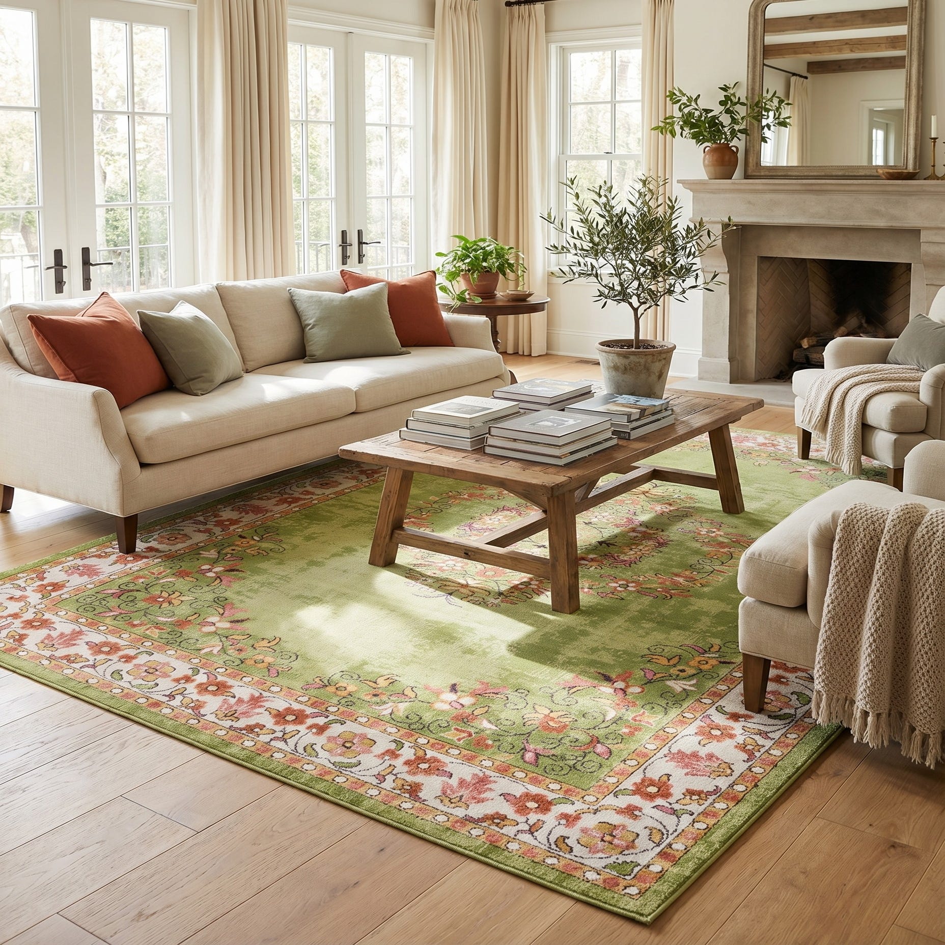 This rug has become the design inspiration for my whole house! I was tired of all the grey and tan and this was the perfect solution. The rug lays nice and flat in a high traffic area no tripping on bent up corners. It was folded when it came but the creases have all flattened out nicely with no extra effort on my part. I get a lot of compliments on it.