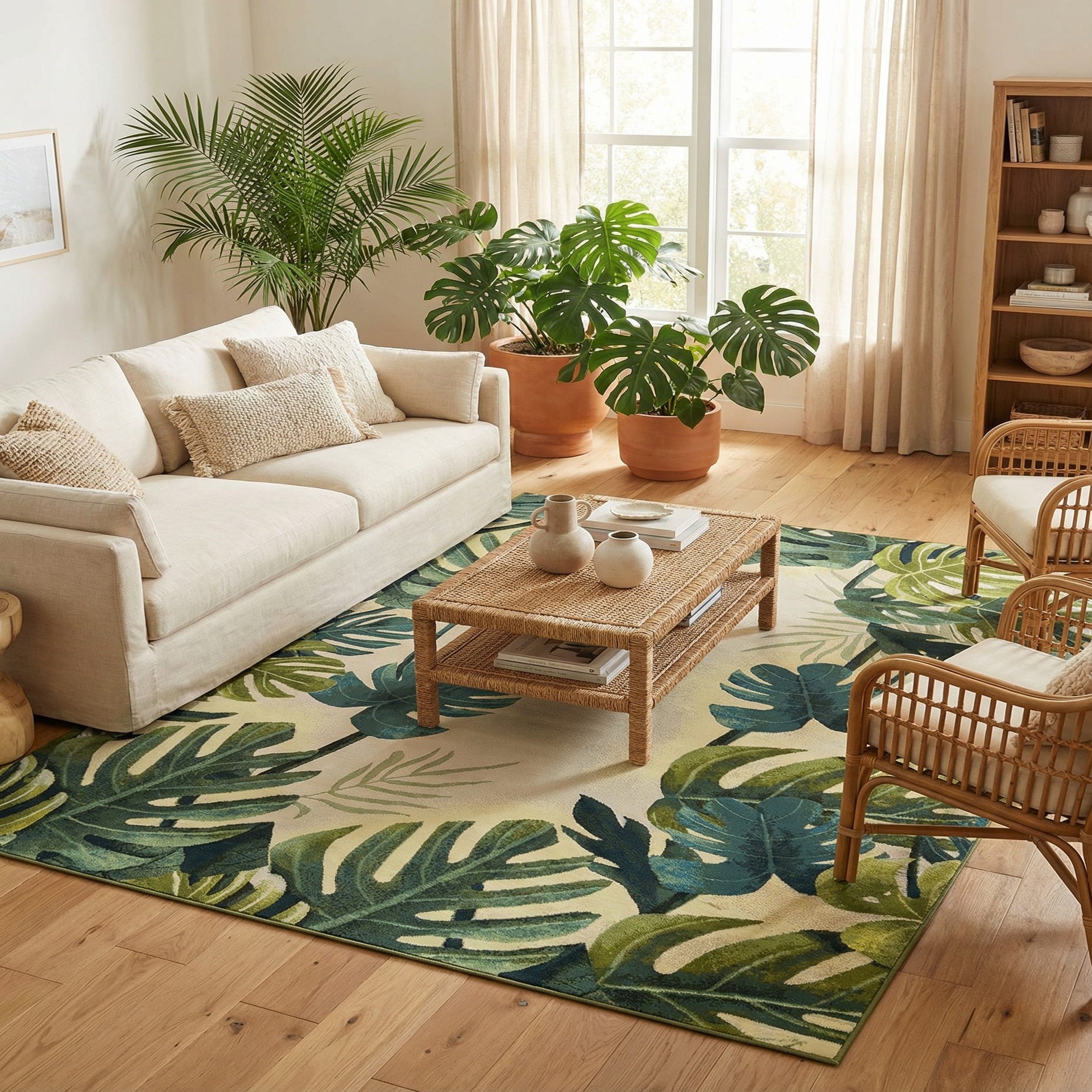 Primary image 7' 10 x 11'  Washable Botanical Indoor / Outdoor Rug