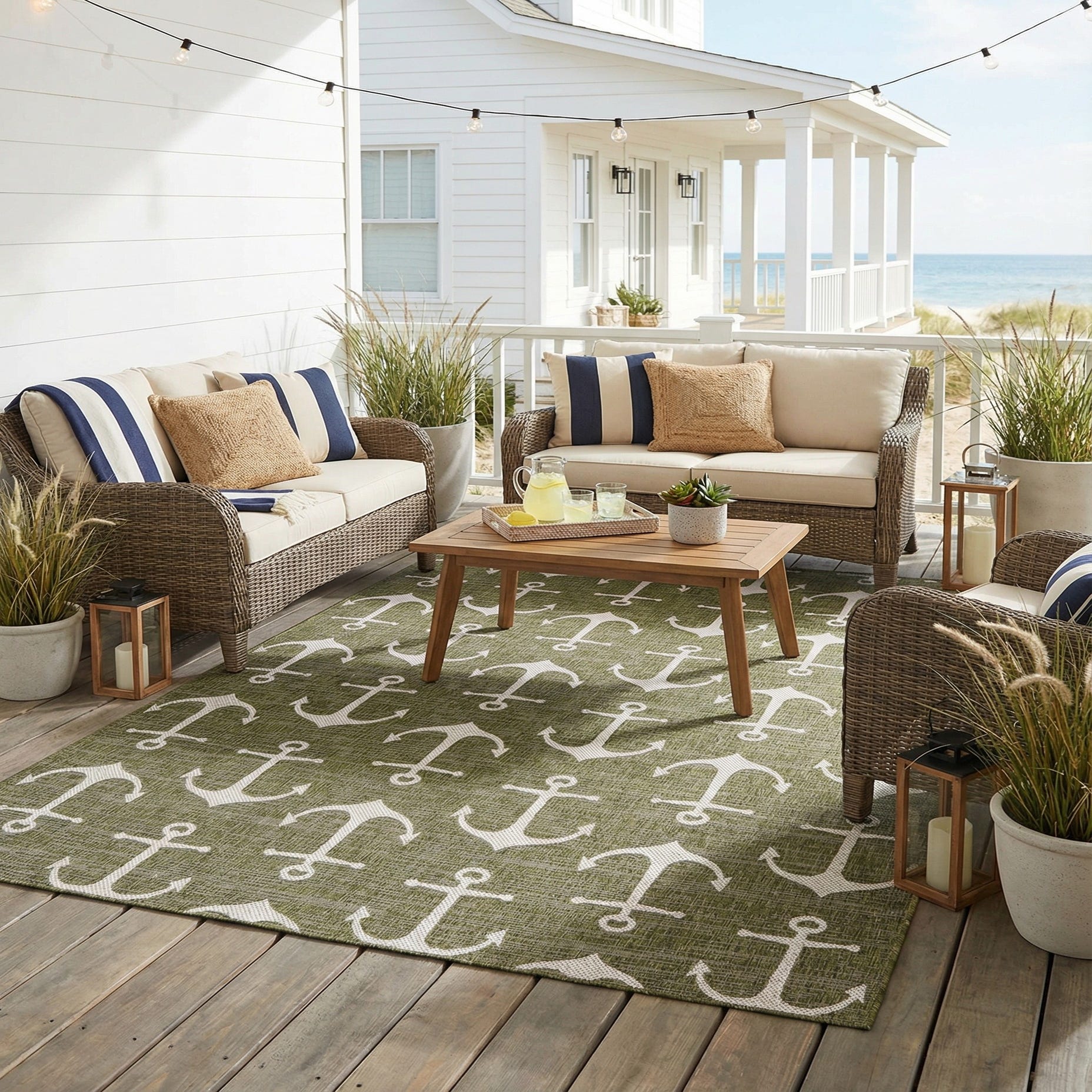 7' 10 x 11' Washable Coastal Indoor / Outdoor Rug