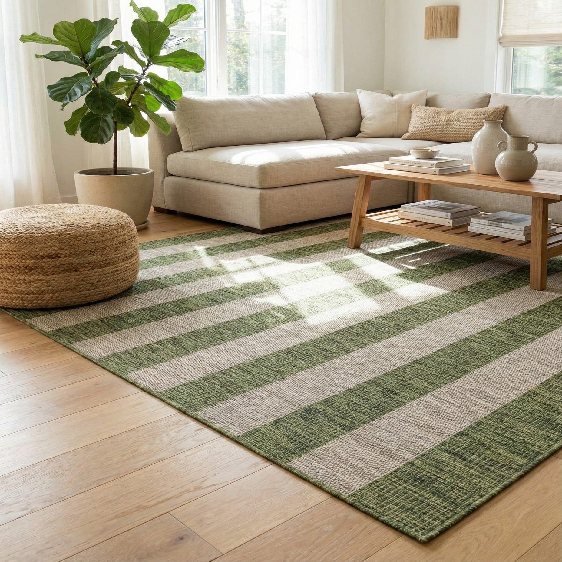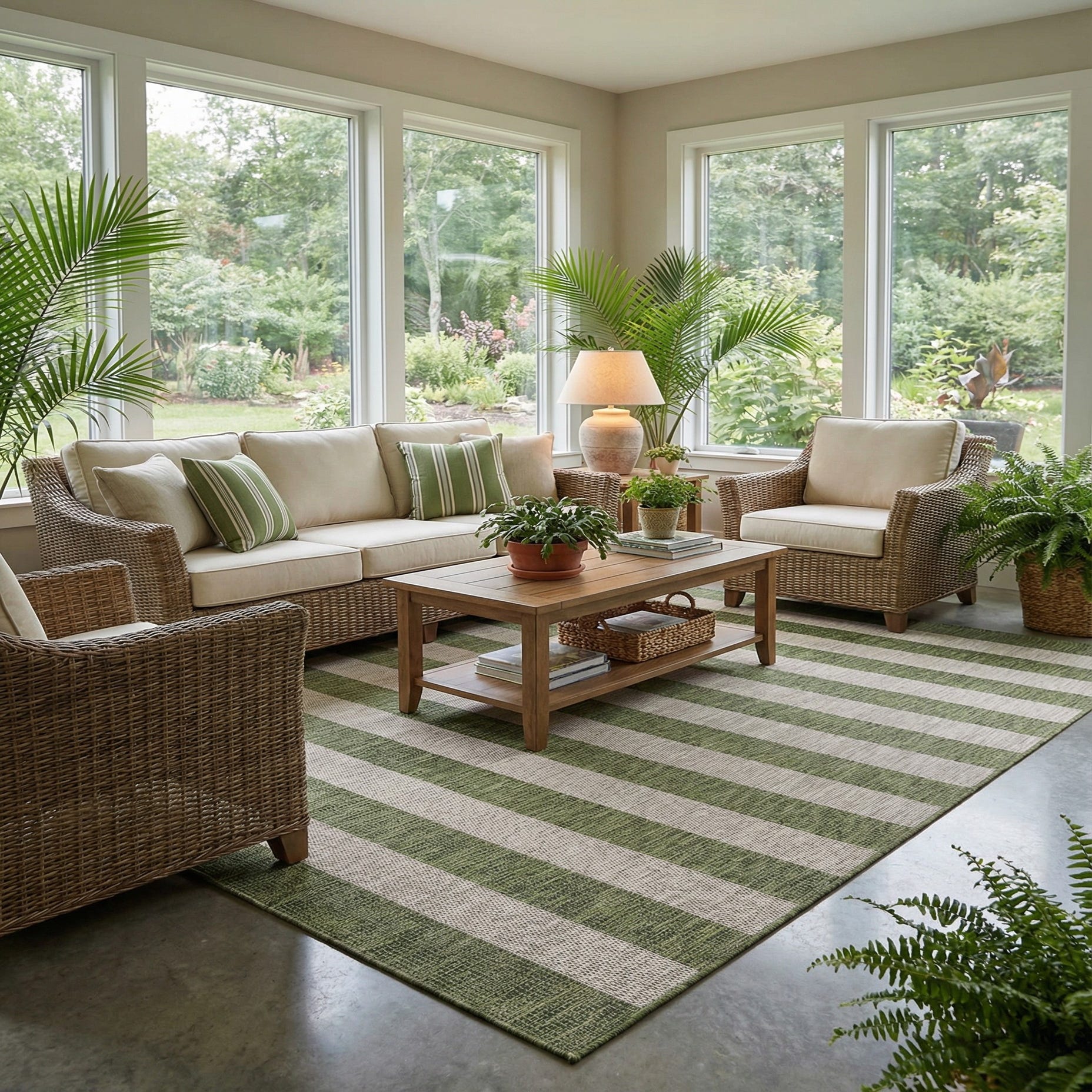 7' 10 x 11' Washable Striped Indoor / Outdoor Rug