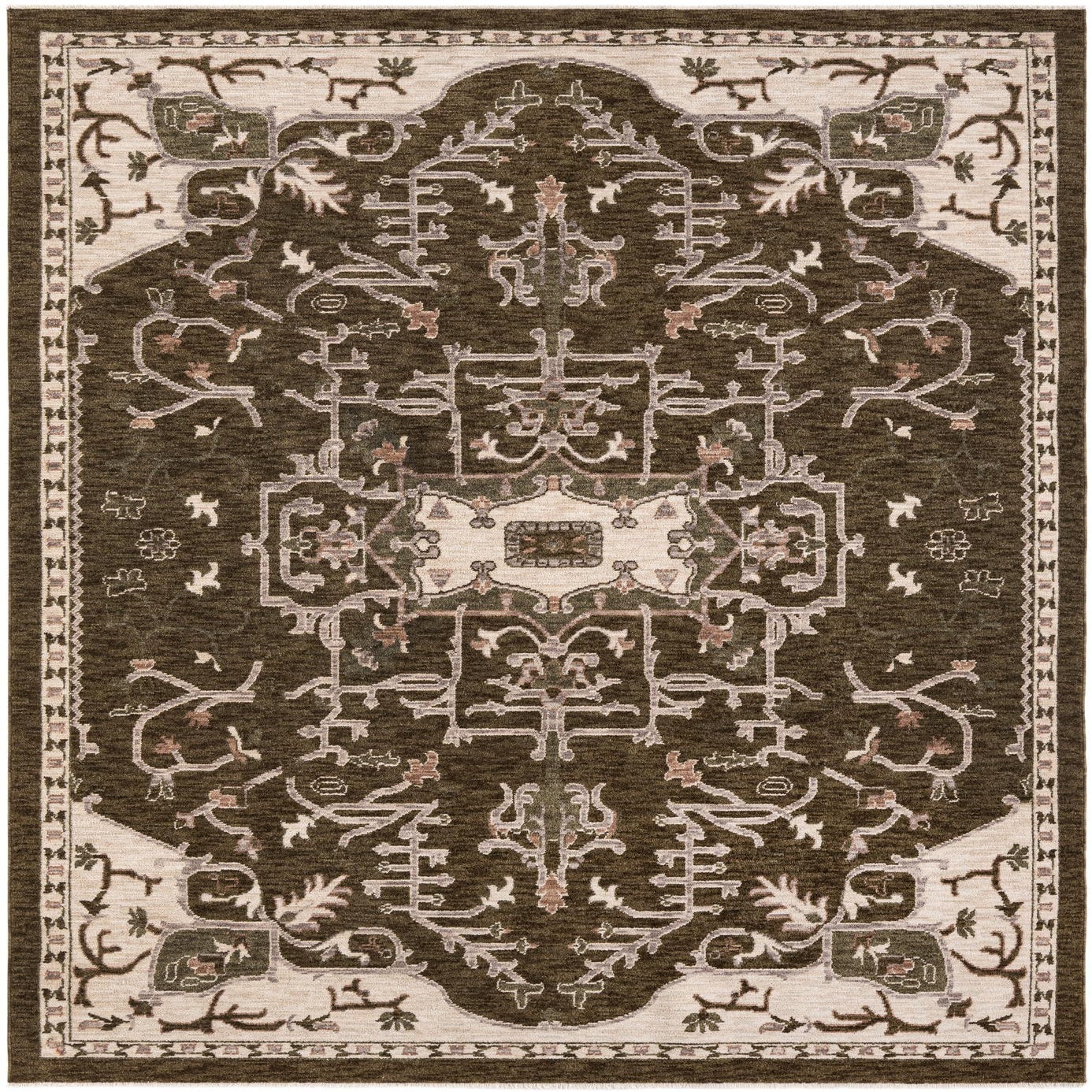 Primary color is Green. Colors in this rug include: Green, Beige, Ivory, Gray.