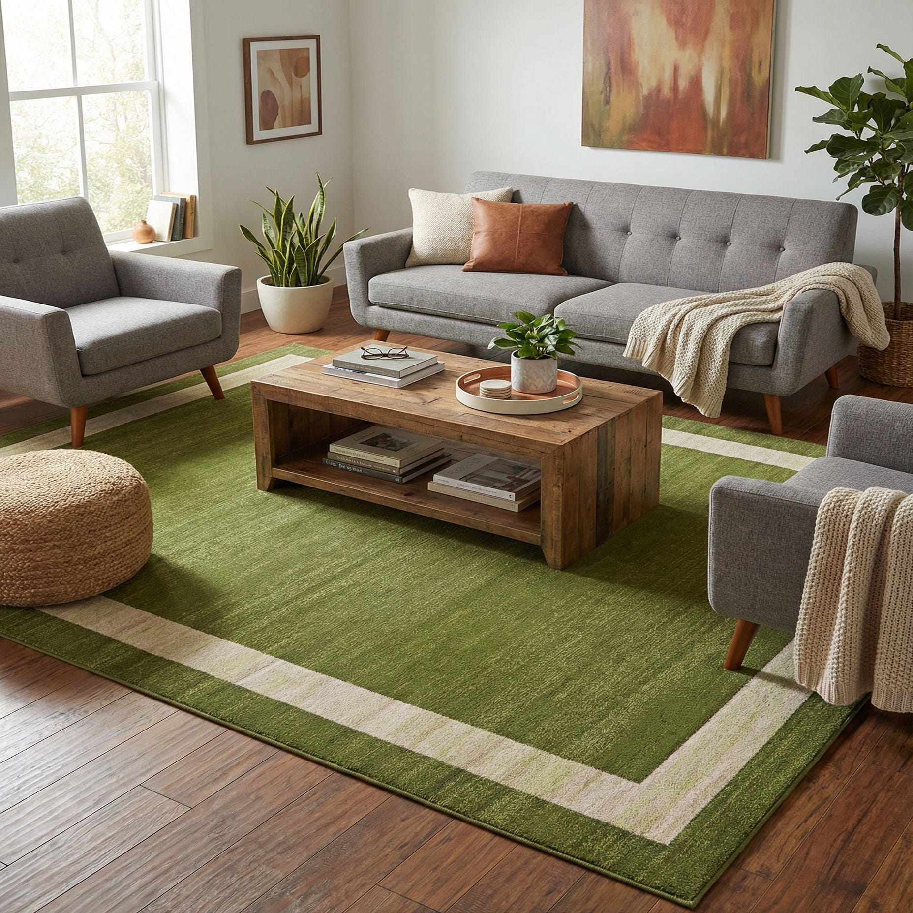 Primary color is Green. Colors in this rug include: Green, Ivory.