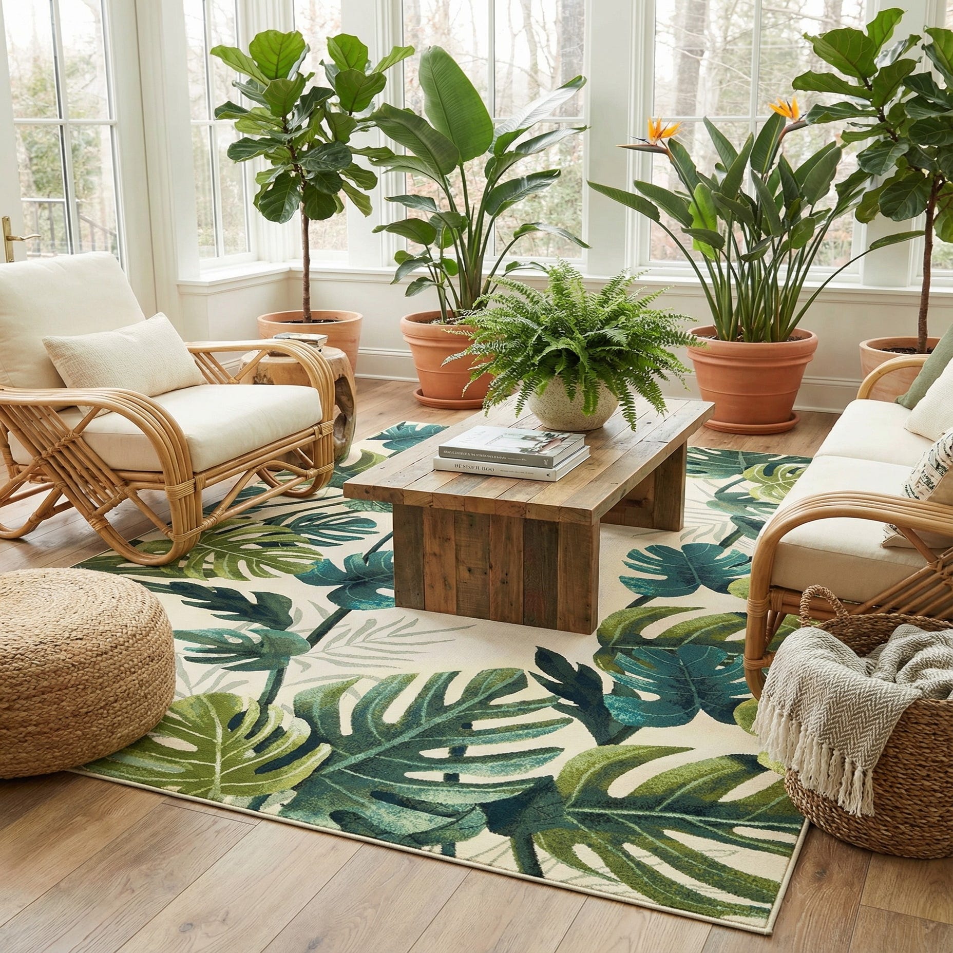 Primary image 9' x 12'  Washable Botanical Indoor / Outdoor Rug