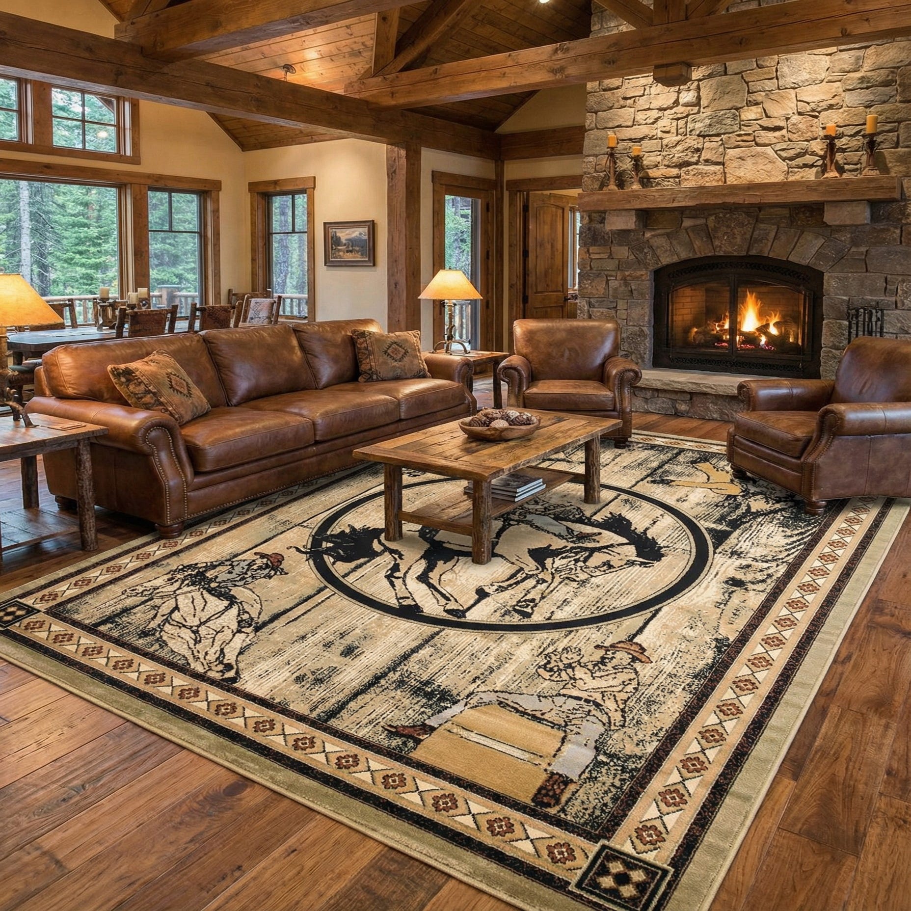 Primary color is Green. Colors in this rug include: Green, Black, Beige, Brown, Light Blue.