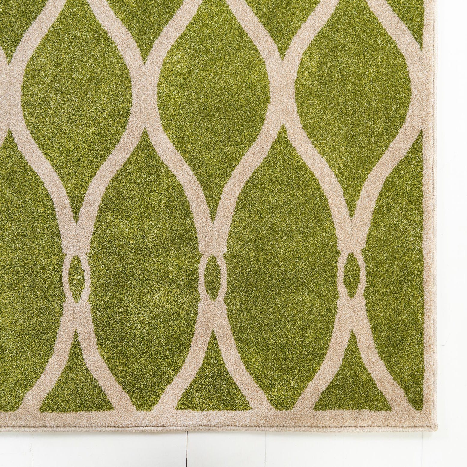 Primary color is Green. Colors in this rug include: Green, Beige.
