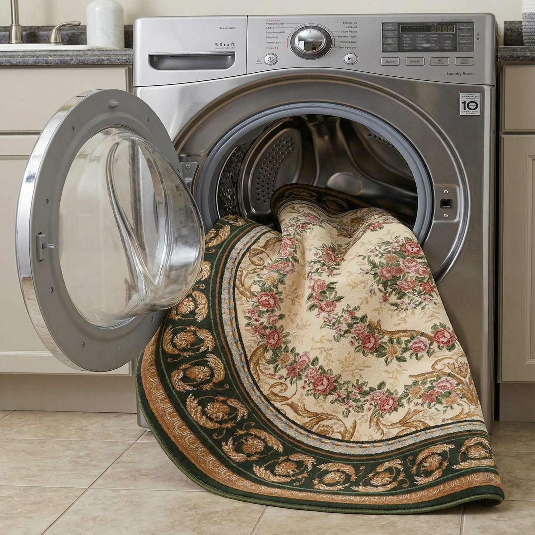 Detail image of 7' 10 x 7' 10  Washable Traditional Indoor / Outdoor Round Rug