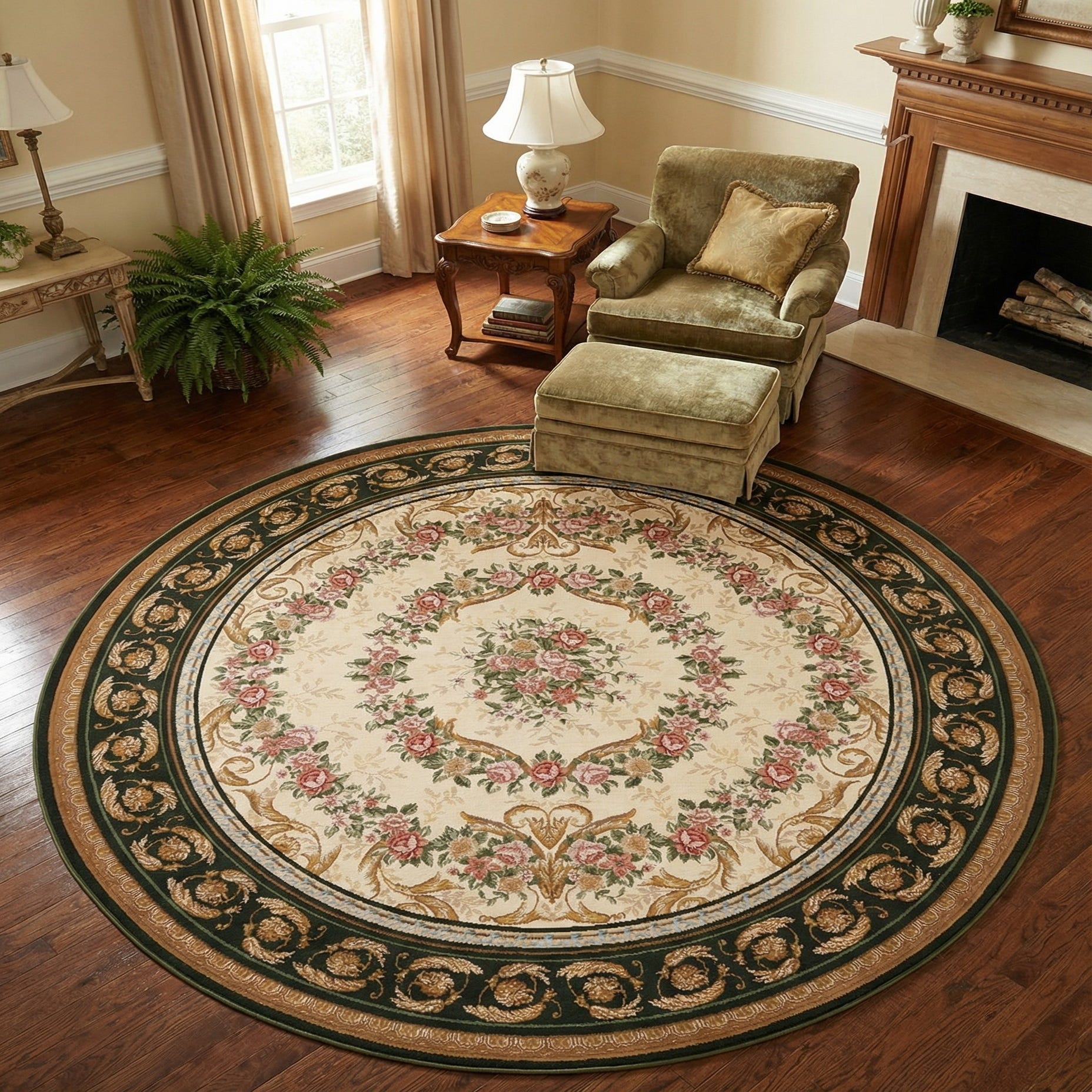 7' 10 x 7' 10 Washable Traditional Indoor / Outdoor Round Rug