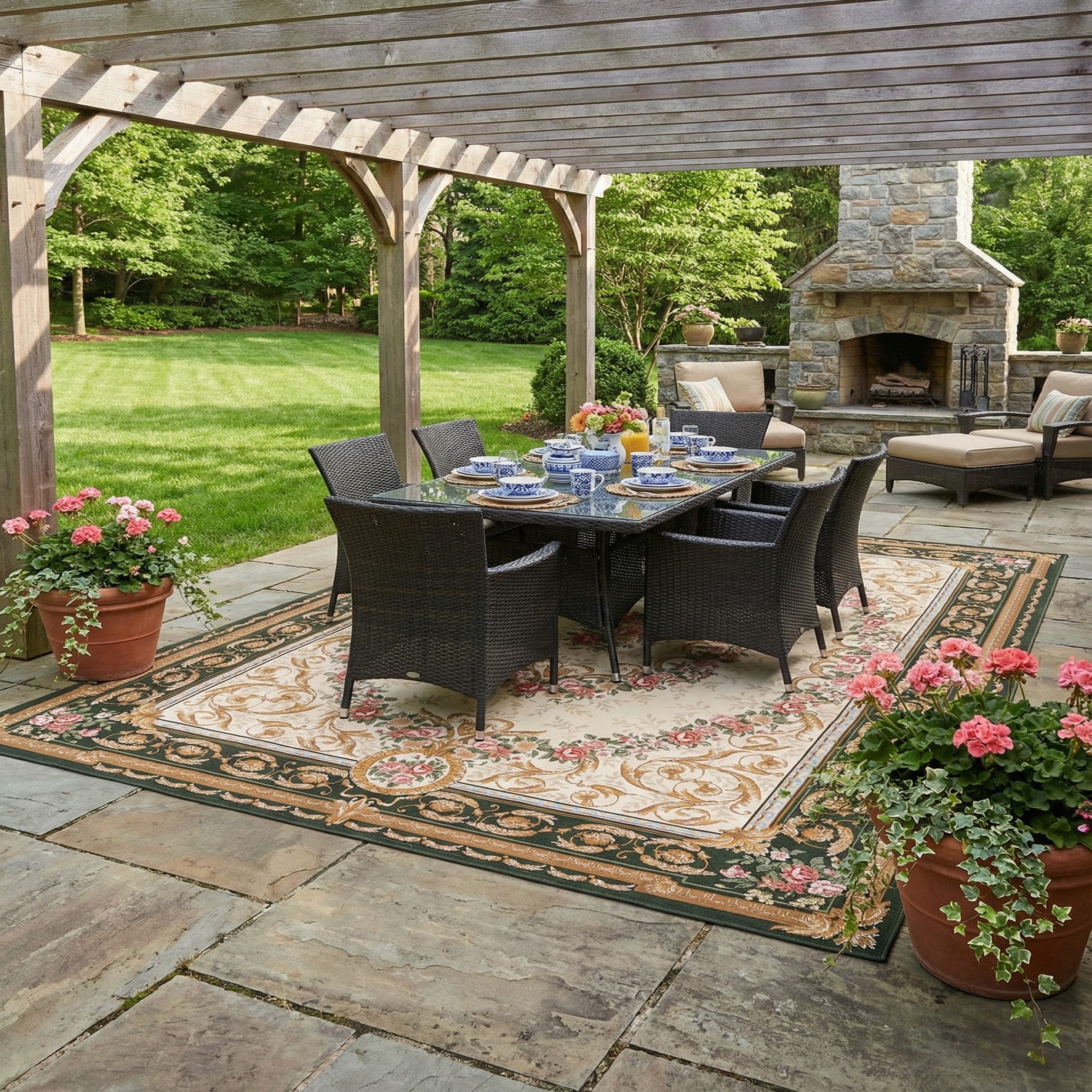 9' x 12' Washable Traditional Indoor / Outdoor Rug