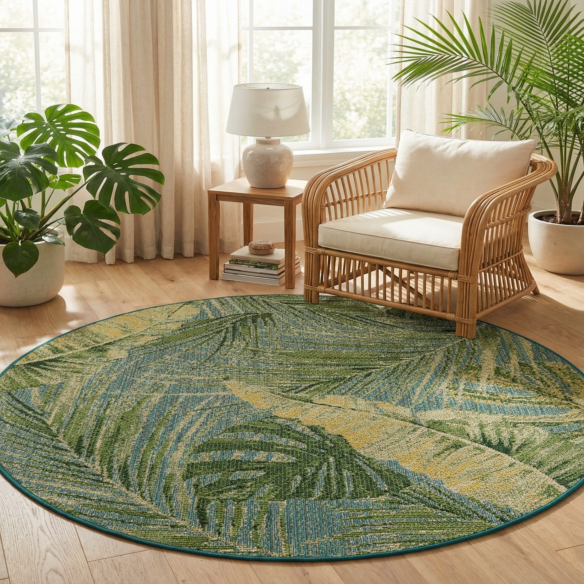 5' x 5' Washable Botanical Indoor / Outdoor Round Rug